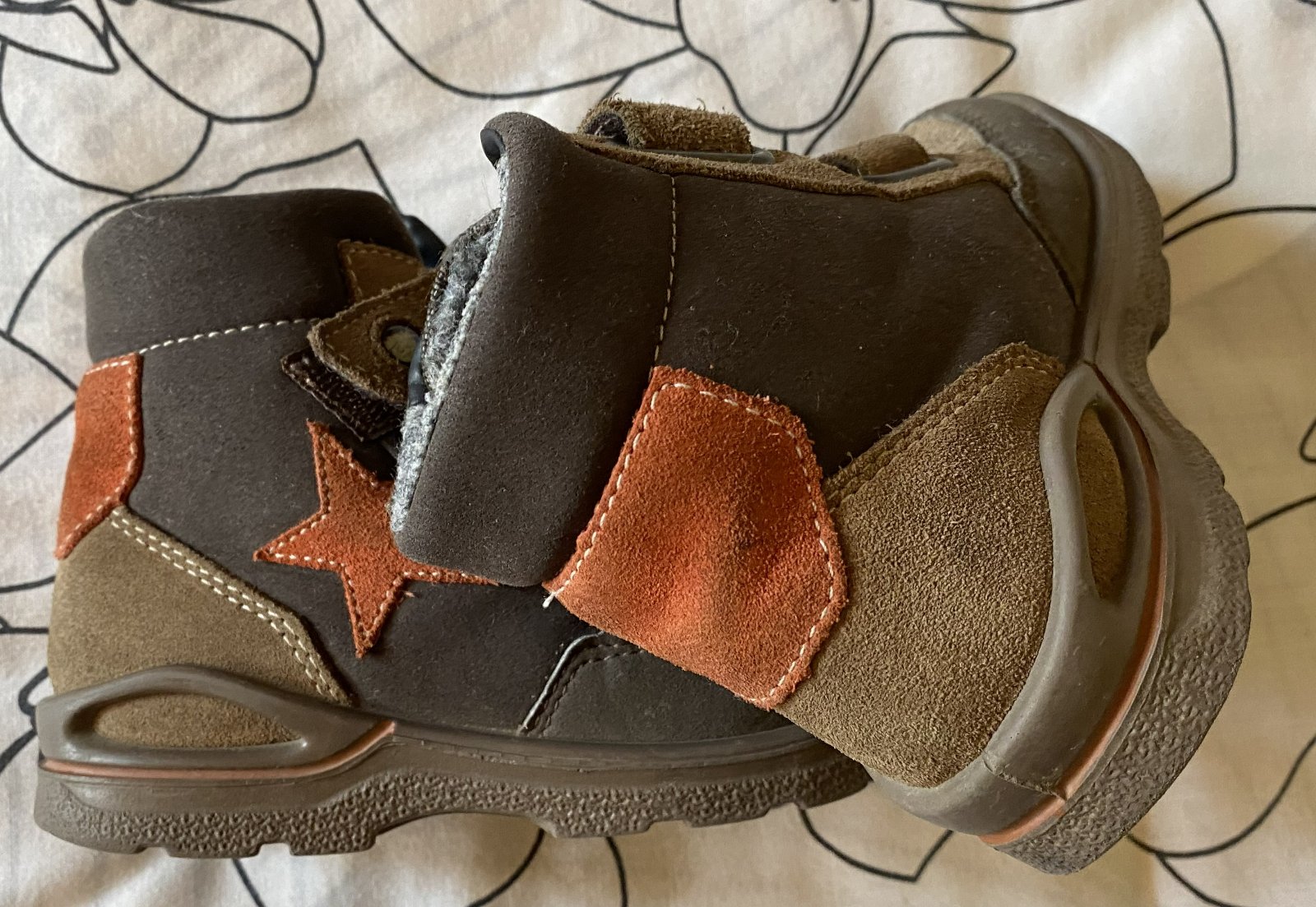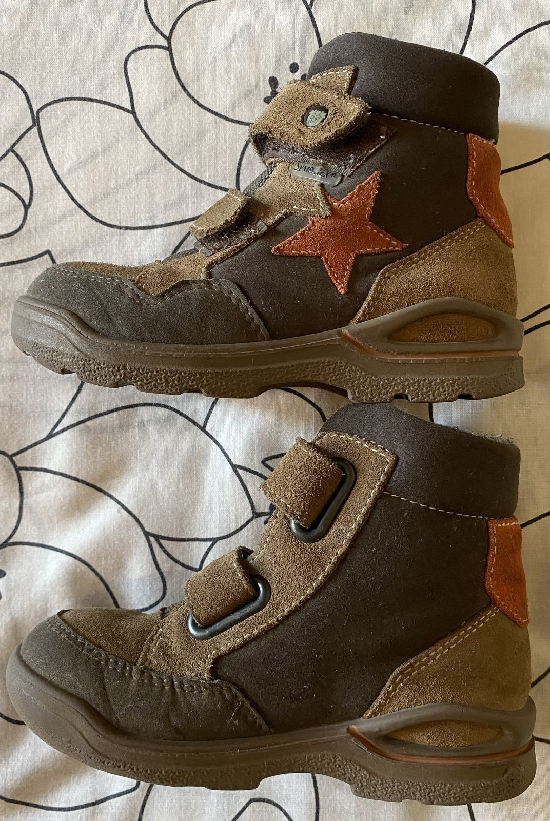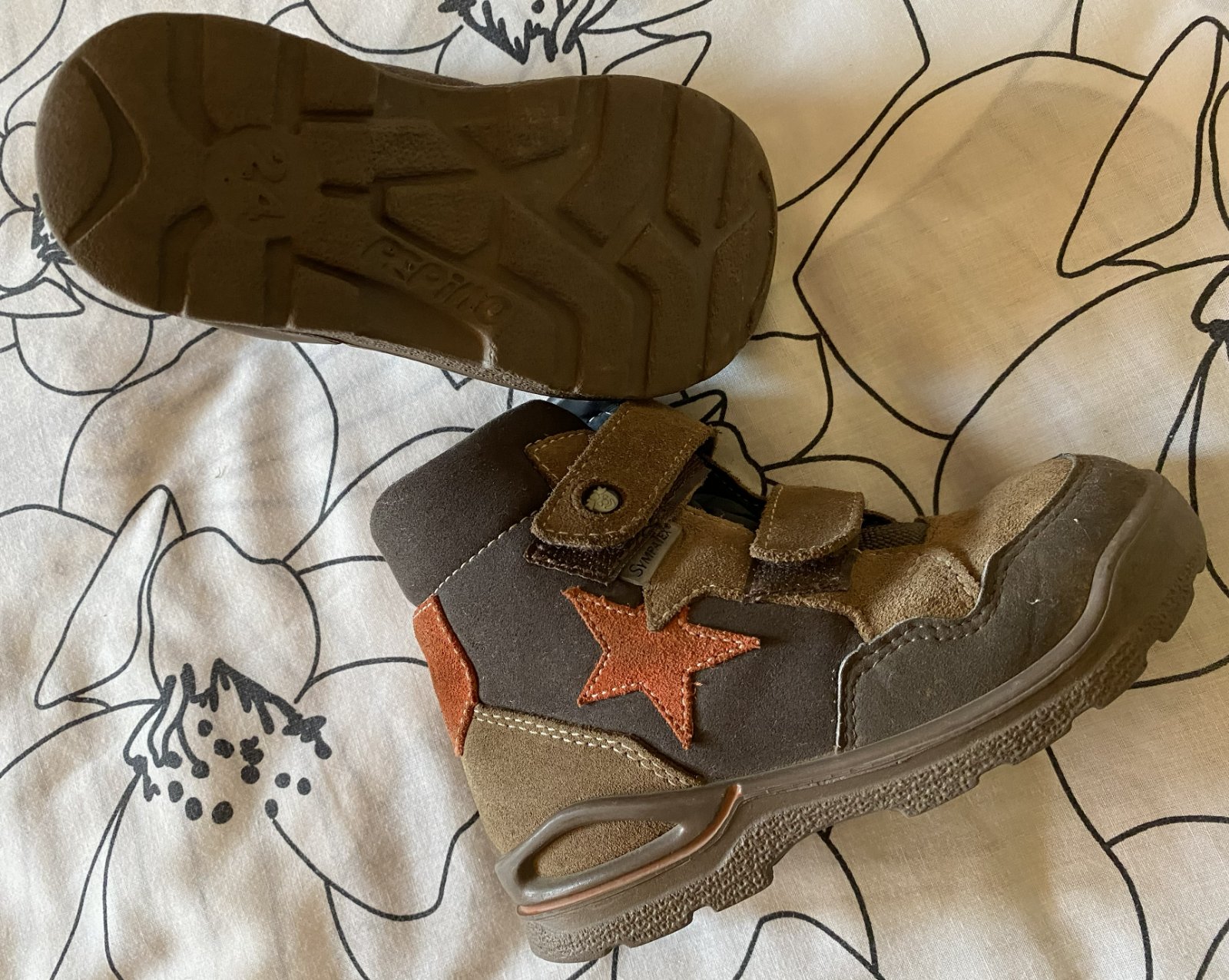 Kožené detské zimné topánky Ricosta v. 24, pekné farebné detaily, kombinácia farieb tmavohnedá, svetlá hnedá, tehlová, suchý zips, teplučké, málo nosené, na striedačku s inými, bez poškodenia + grátis pridám tenisky Nickelodeon PAW Patrol v. 25, farby ako na foto, nosené na striedačku s inými, peknom nosenom stave, lepačky pevne držia - viď foto..