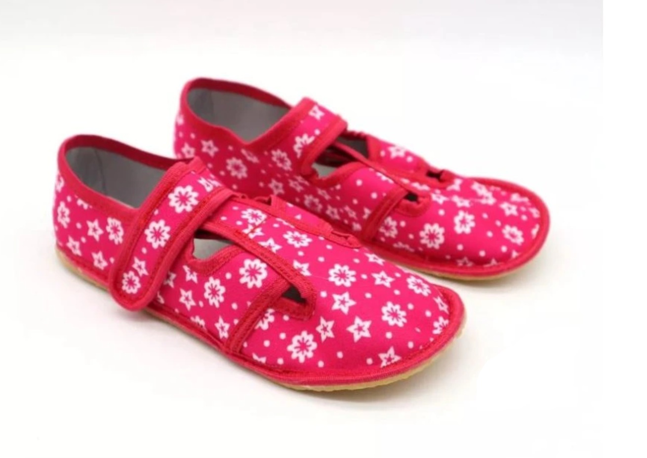 Textilné barefoot papučky. Vhodné na nôžky s užšou pätou.