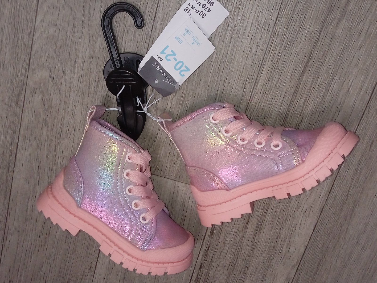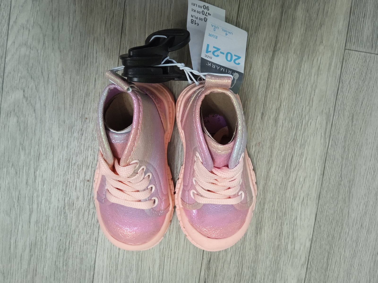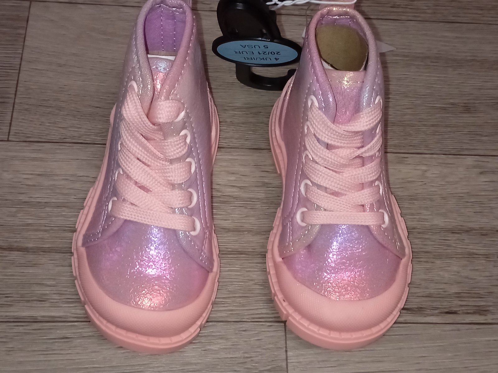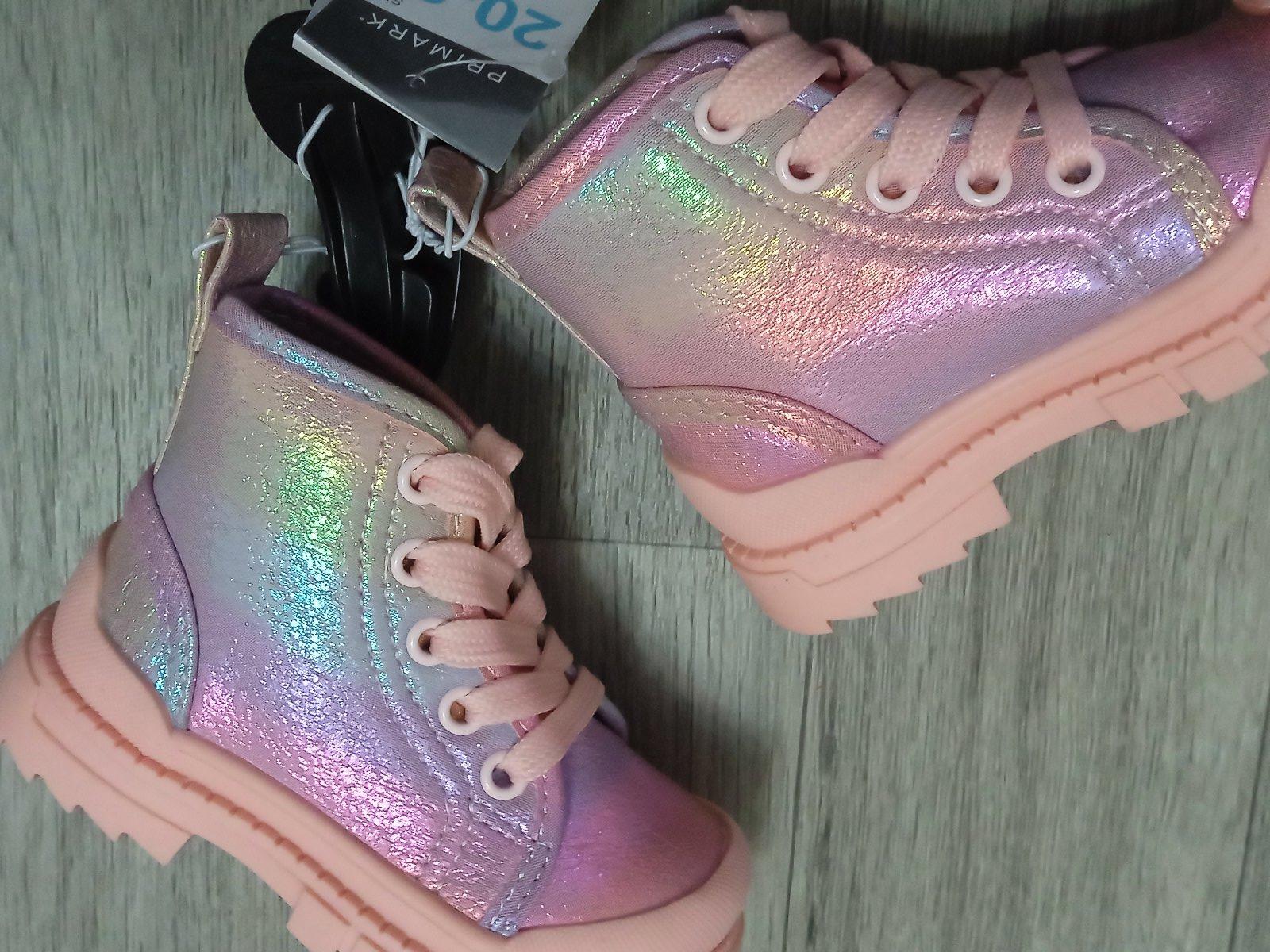 Bledoružové čižmičky alebo vyvýšené tenisky na šnúrky s dúhovým efektom.