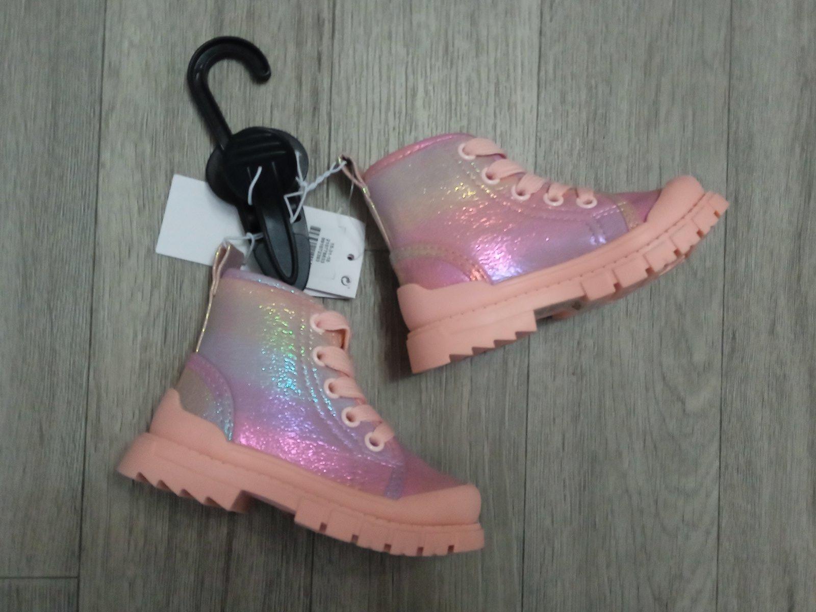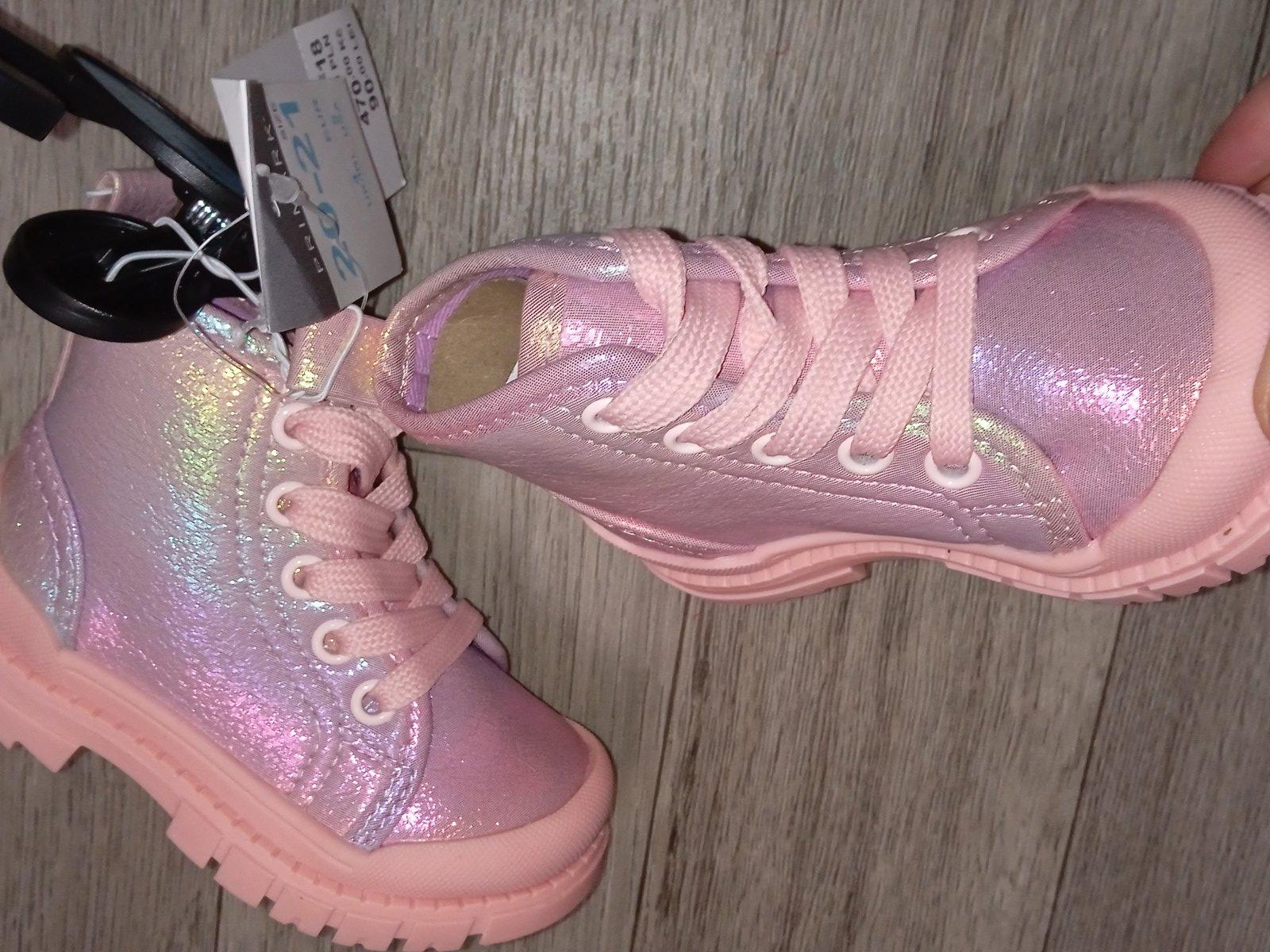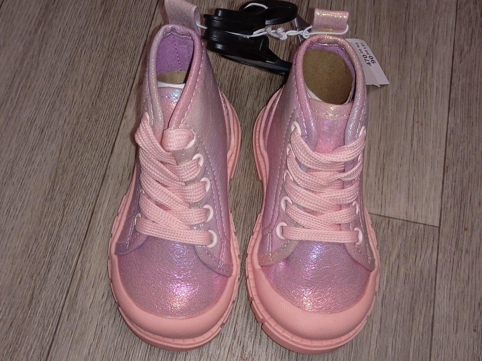 Bledoružové čižmičky alebo vyvýšené tenisky na šnúrky s dúhovým efektom.