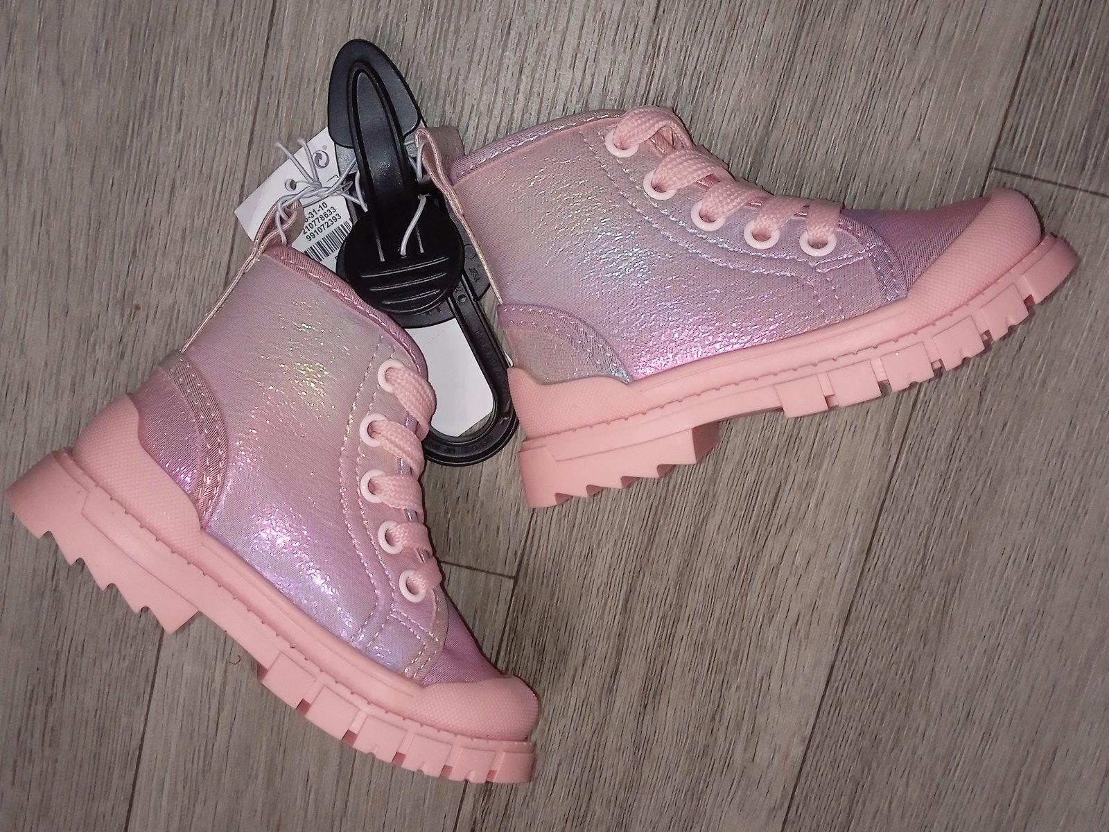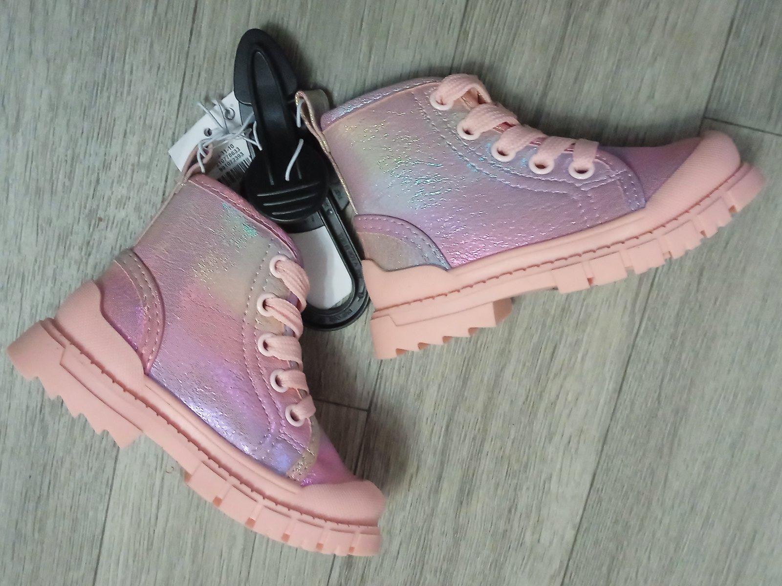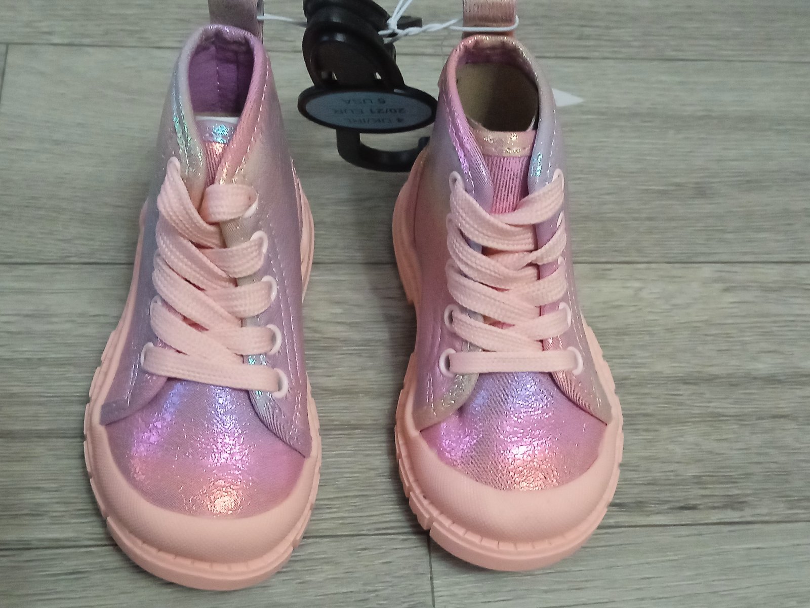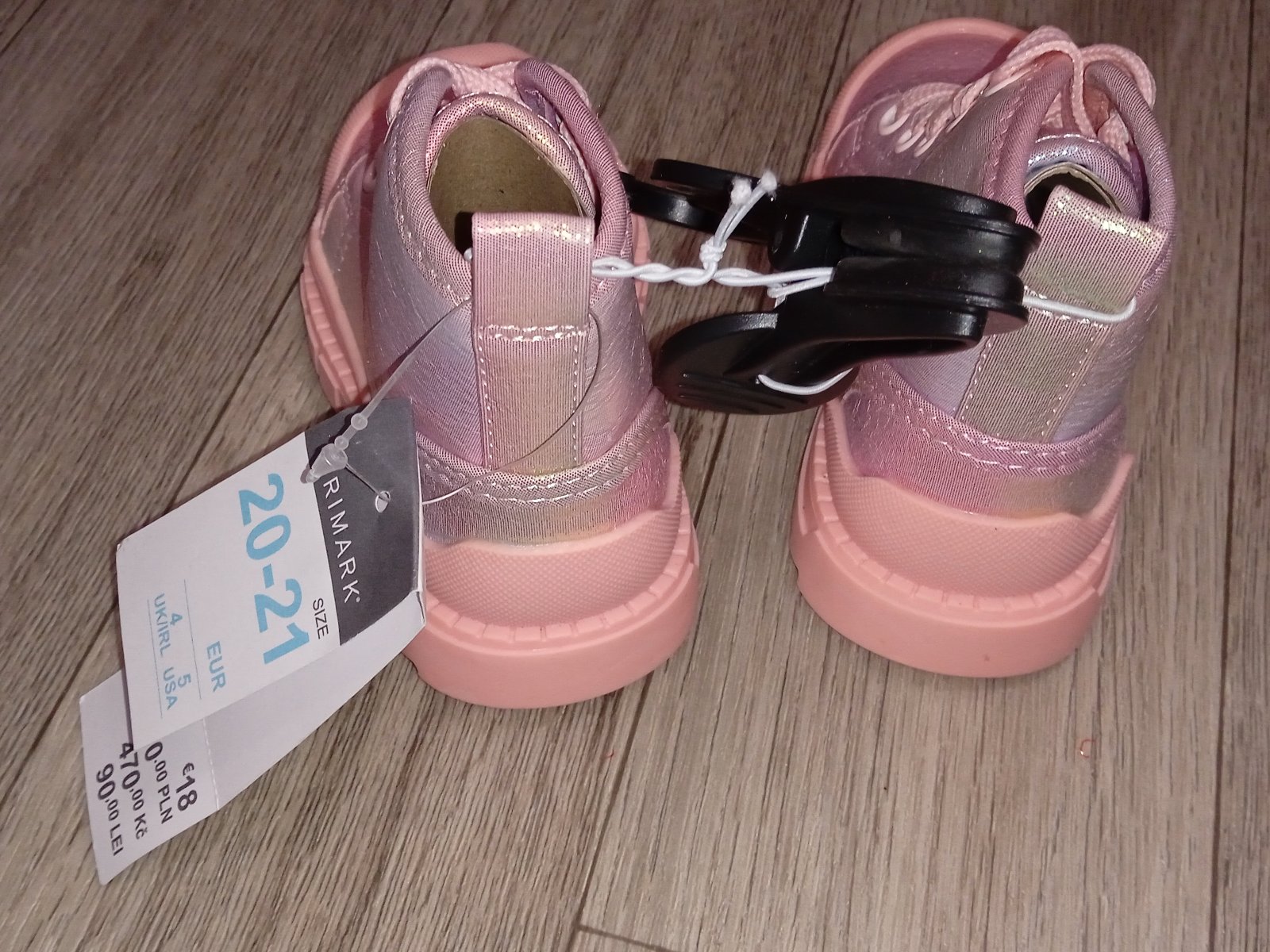 Bledoružové čižmičky alebo vyvýšené tenisky na šnúrky s dúhovým efektom.