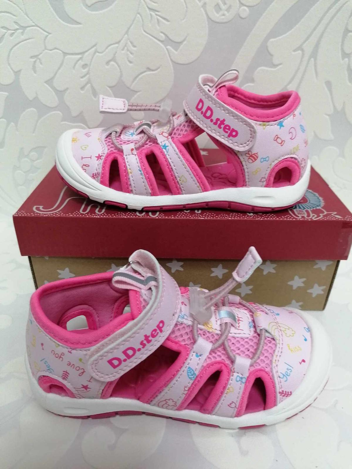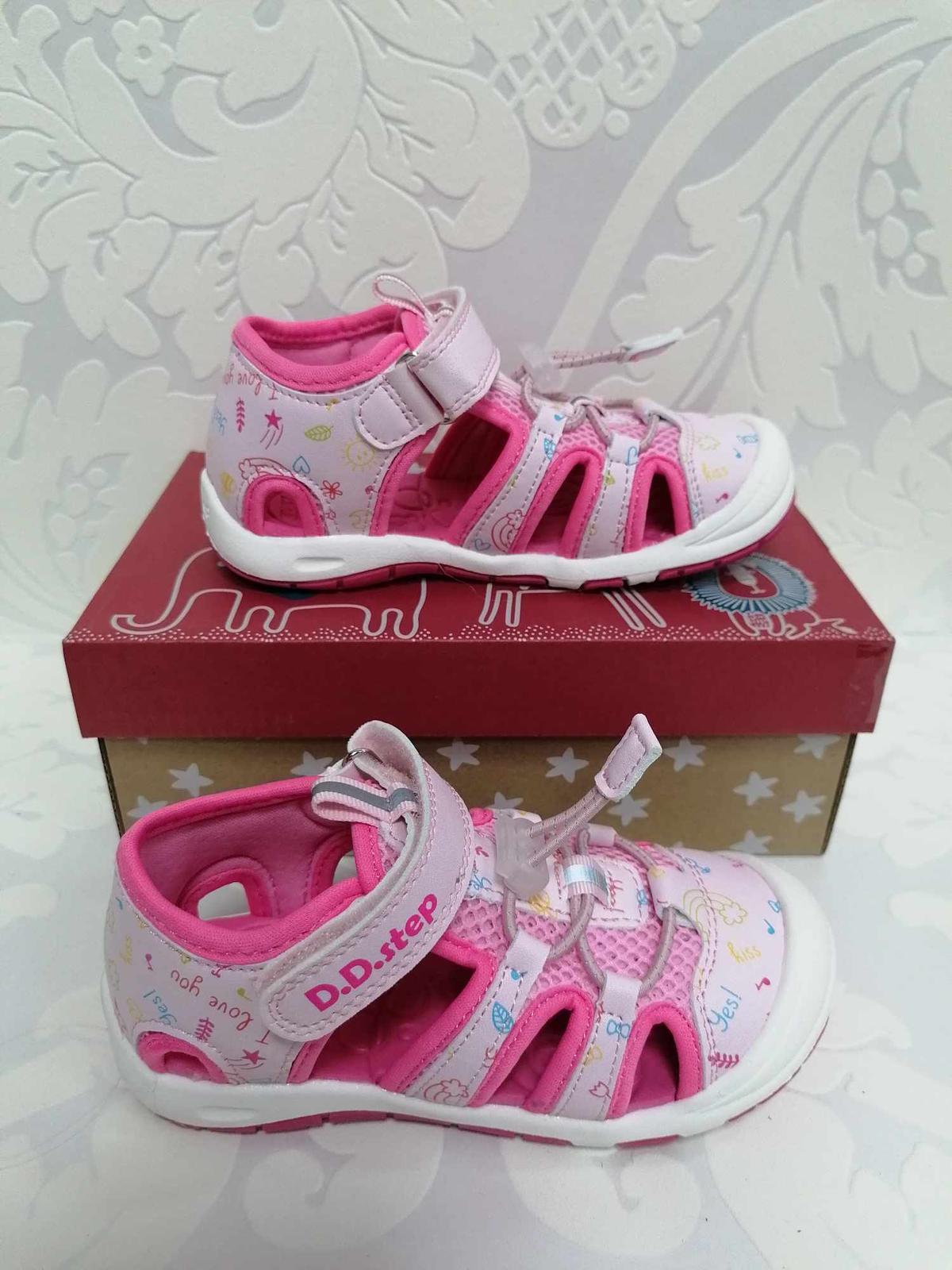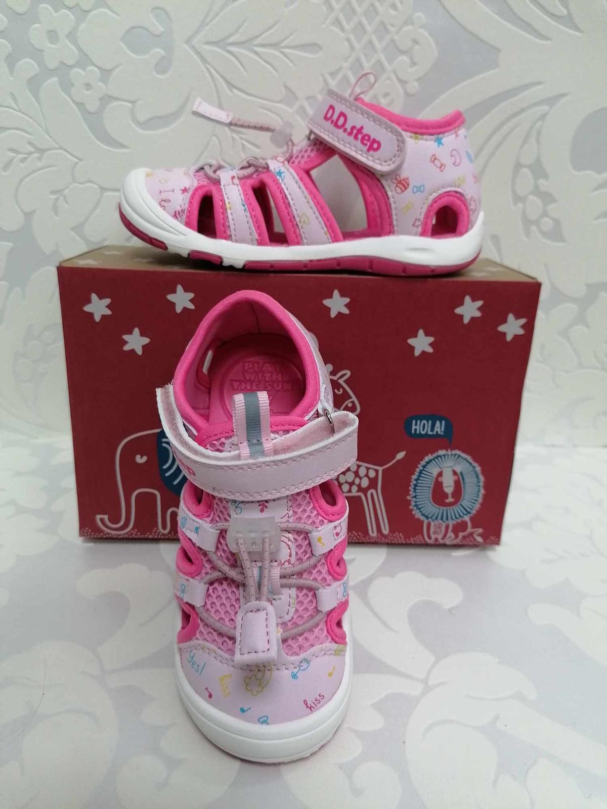 Sandály zn.D.D.Step je detská letná vychádzková obuv. Topánky majú pevný opätok s praktickým zapínaním na jeden suchý zips,s plnou špicou a gumičku na stiahnutie. Stielka je s tvarovaním.