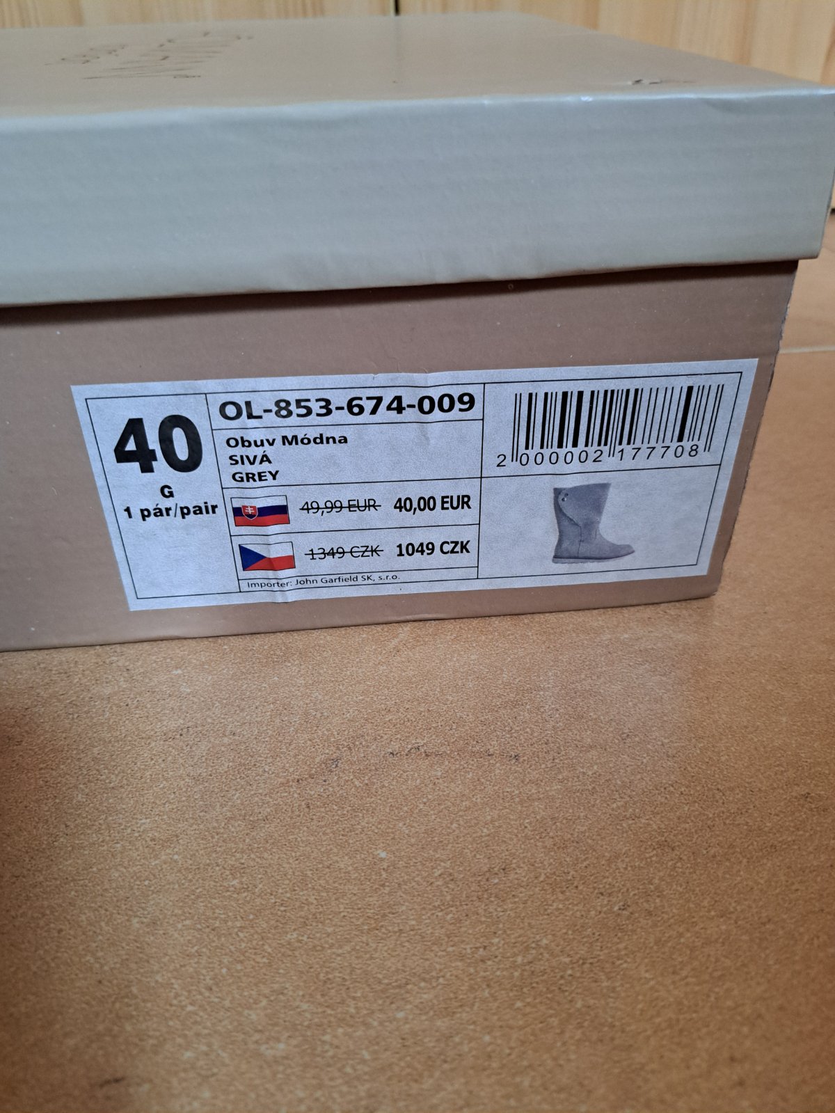 Pôvodná cena: 40€. Krabica od topánok je porušená.