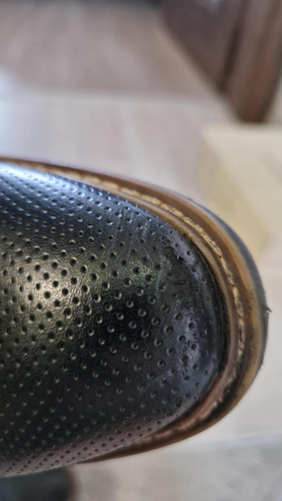 Predám poltopánky s malou vadou. Predná časť špičky je trochu poškodená.