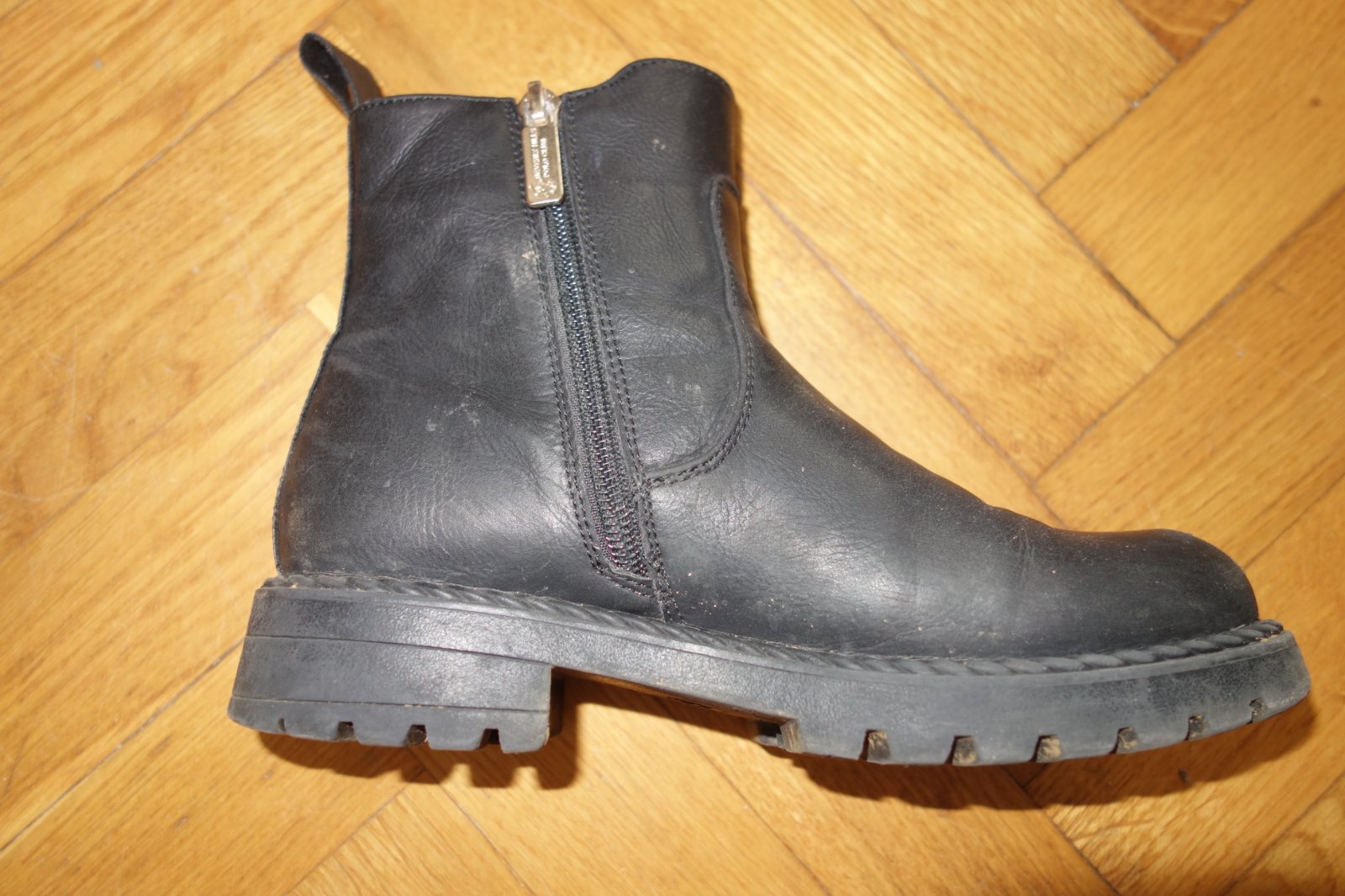 Veľmi dobrý stav. Zapínanie na zips. Opätok 3 cm, podrážka 2 cm, protišmyková. Zateplené. Sú perfektné, vpredu okopané.