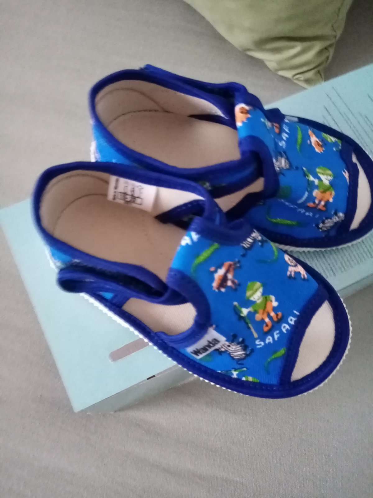 Papuče slovenskej značky Wanda. Majú spevnenú pätu, jemne tvarovanú stielku, regulovateľné suchým zipsom (cez členok aj nárt). VD pozri foto. Nosené 2 mesiace v škôlke, majú bežné známky nosenia.