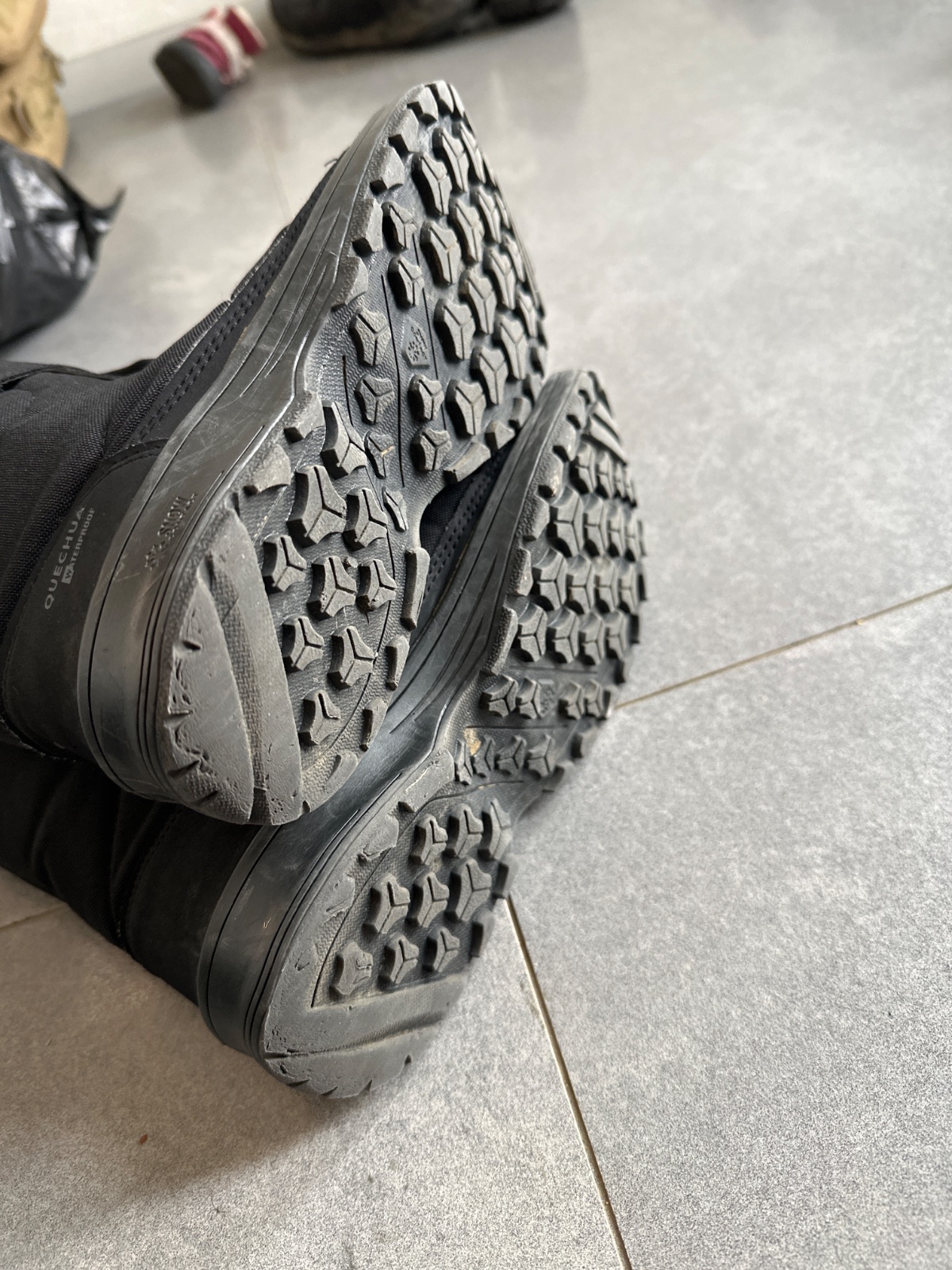Detské hrejivé nepremokavé čižmy na turistiku do snehu veľkosť 35, vnútorná dlžka 22 cm zapínanie na suchý zips kupované v decathlone PC 25€