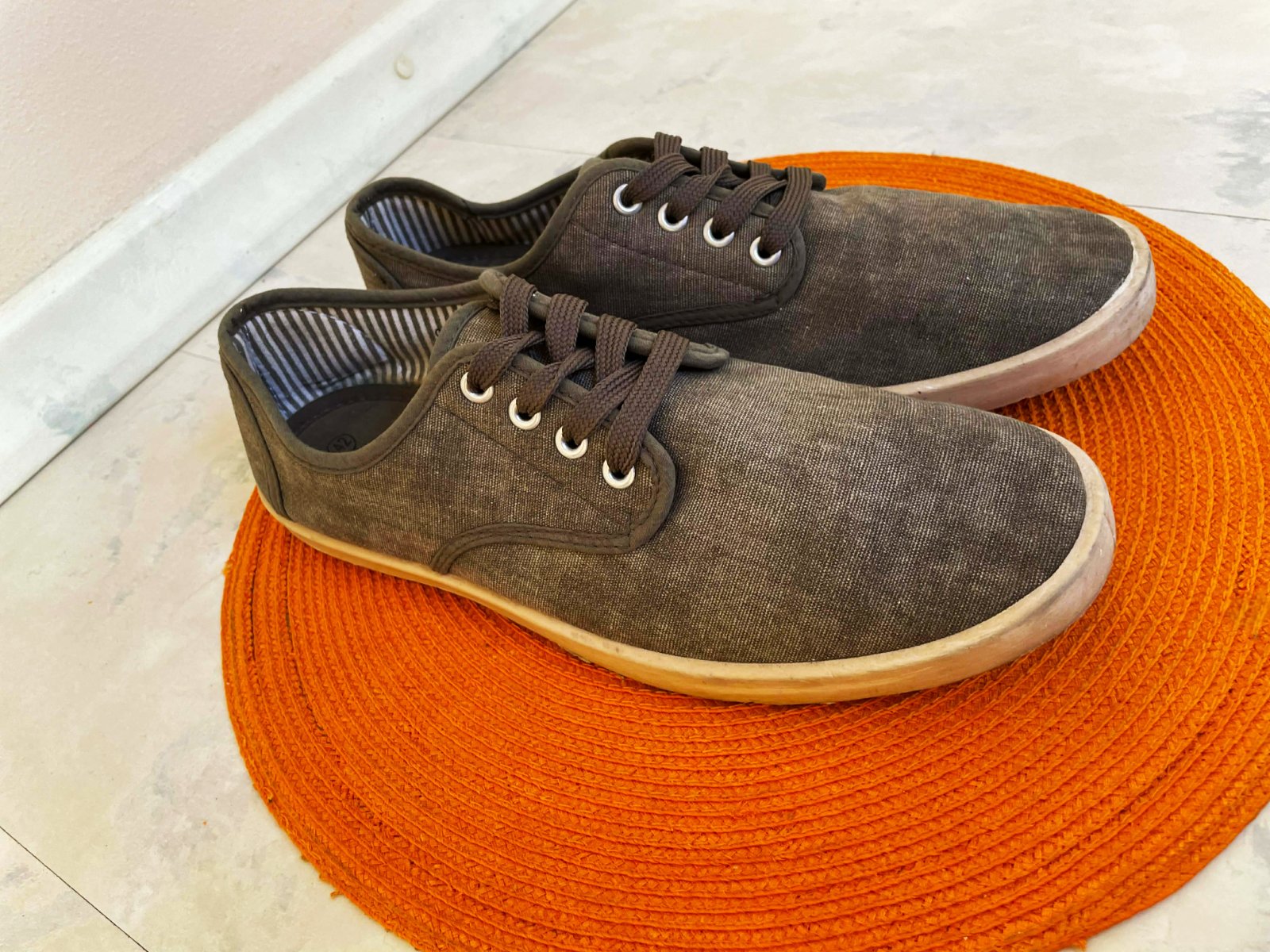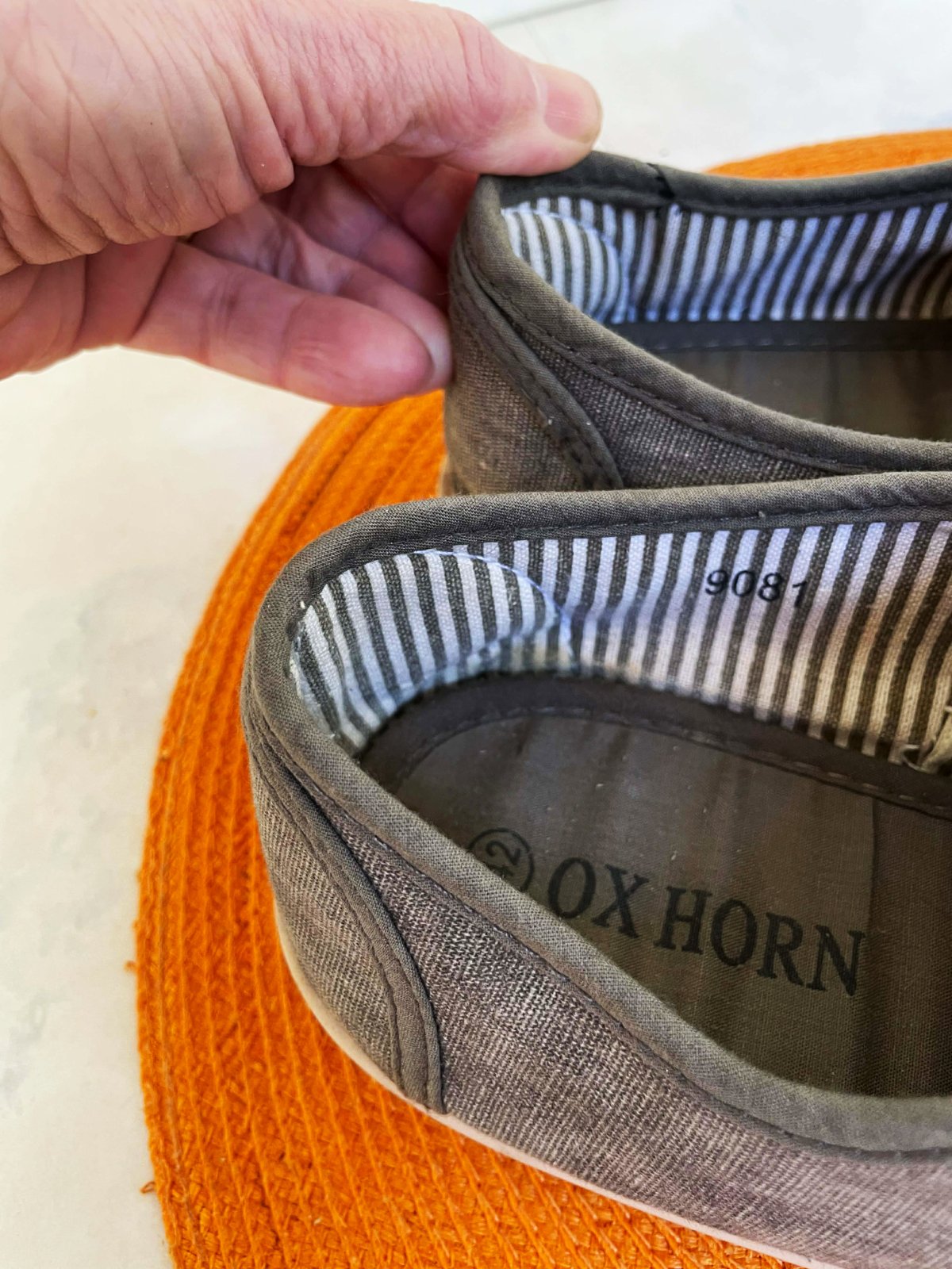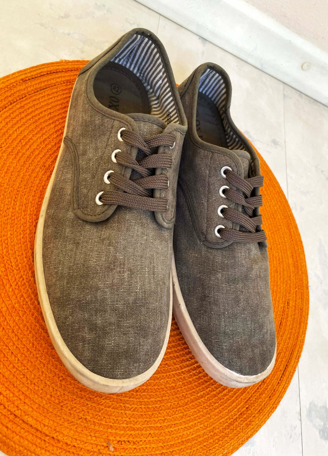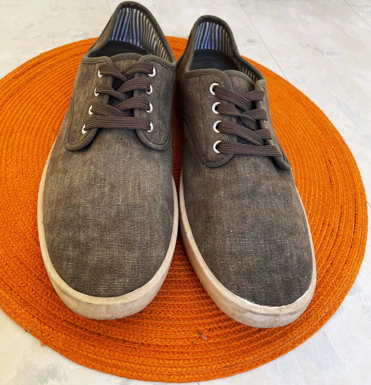 ľanové plátenky na leto - v prírodnej naturálnej studeno hnedošedej farbe, fotka verne zachytáva farbu,vnút. dlžka = 27 cm, pruhované vnútro....