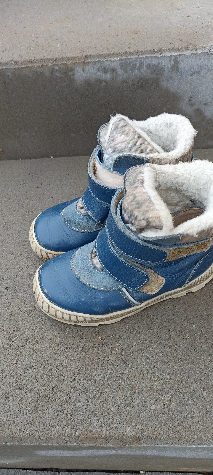 Super teplé a pohodlné kožené zimné topánočky. Sú vhodné aj pre vyšší nart. Majú vpredu mini škrabance ale nič strašné, je to nafotené. Kupujem túto značku každý rok, vyrábané sú v Česku ,topánočky sú zateplené vlnou a dieťatku v nich nie je zima. Cena symbolická, nové stáli 50 Eur.