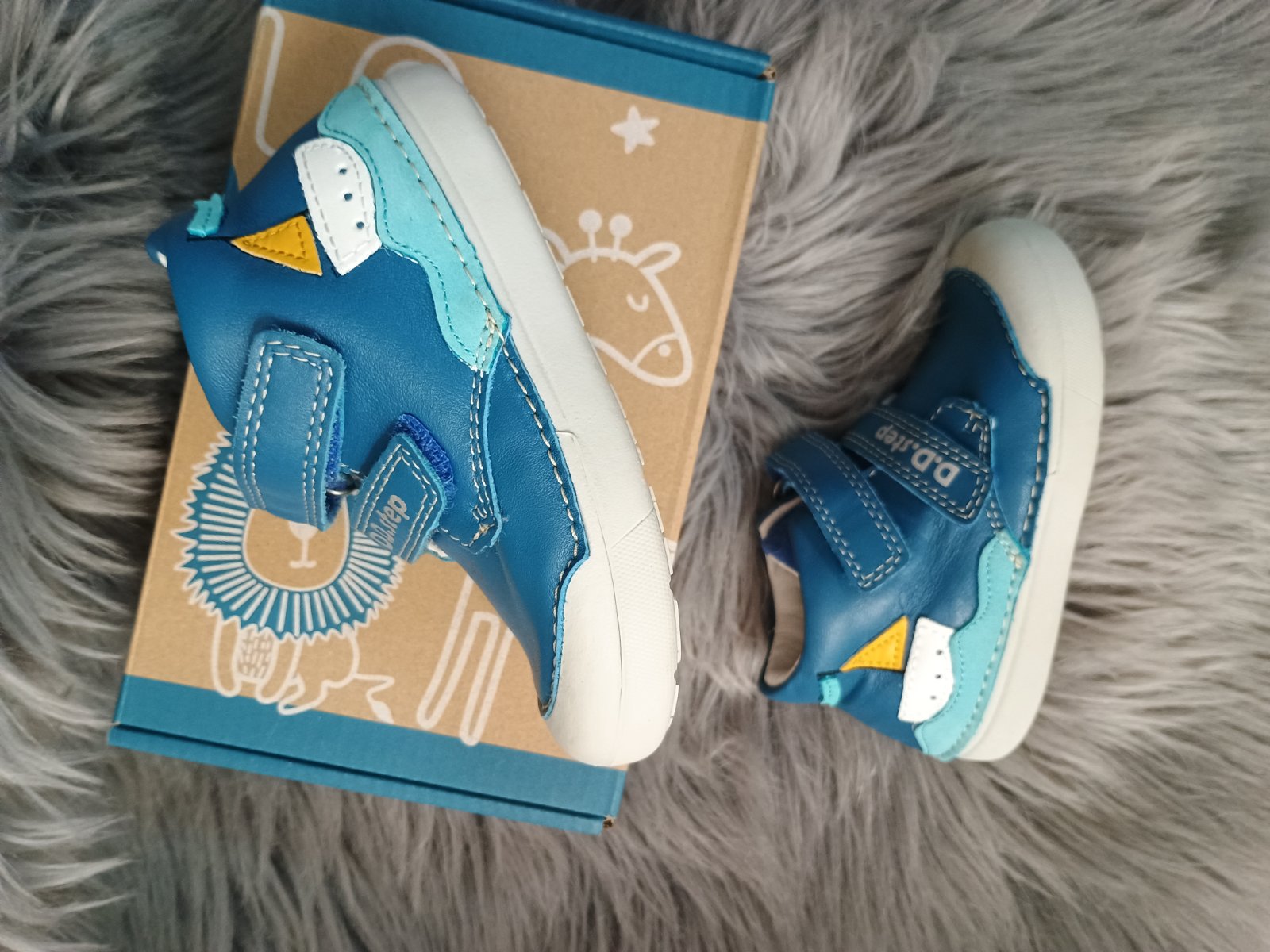 Celoročné topánky od firmy D. D. Step očaria všetkých moreplavcov. Vyberateľná kožená stielka s podporou klenby pomáha detskej nohe dýchať. Vďaka zapínaniu na suchý zips sa dieťa učí samostatnosti a uľahčuje nazúvanie a vyzúvanie. Okrúhla špička zo zvýšenou gumou dodáva dostatok priestoru pre prsty a chráni obuv aj nôžky pred poškodením. Stielka absorbuje vlhkosť a tlmí nárazy pri chôdzi a behu. Vďaka použitým materiálom je topánka ľahká a veľmi ohybná, pružná a s nízkou hmotnosťo