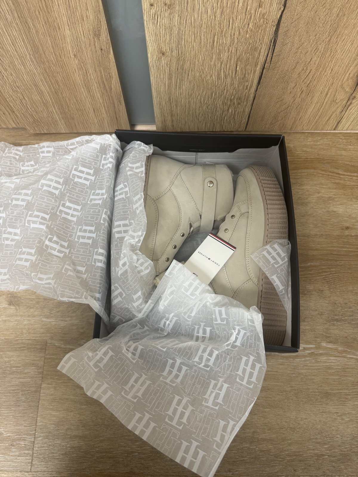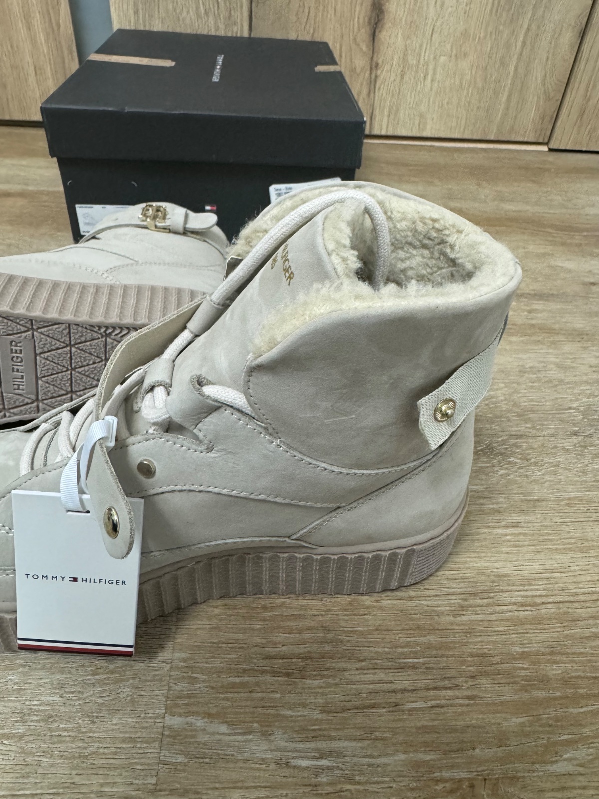 Ponúkam perfektné béžové snehule resp. členkové čižmy originál Tommy Hilfiger. Sú vyteplené, materiál je prírodná useň. Sú na jemne vyvýšenej podrážke aby nebola zima od spodu. Sú pohodlné a ich vnútorná vložka je určená pre veľkosť 40 s vnútornou dĺžkou 25,5cm, čo aj sedí. Neboli nosené, vrátane visačky. Poštovné podľa taríf.