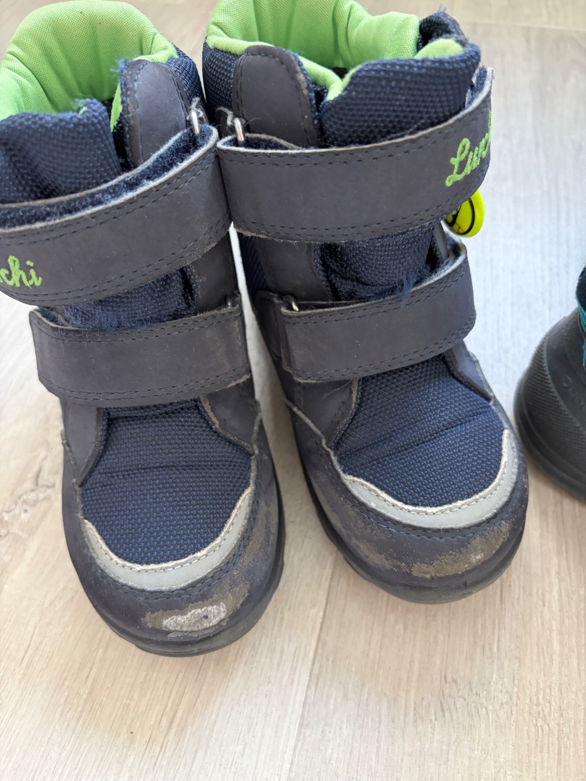 nosene čižmičky,majú je rozpáraný jazyk, a zatrhnutia od suchého zipsu popraskane reflexne prvky