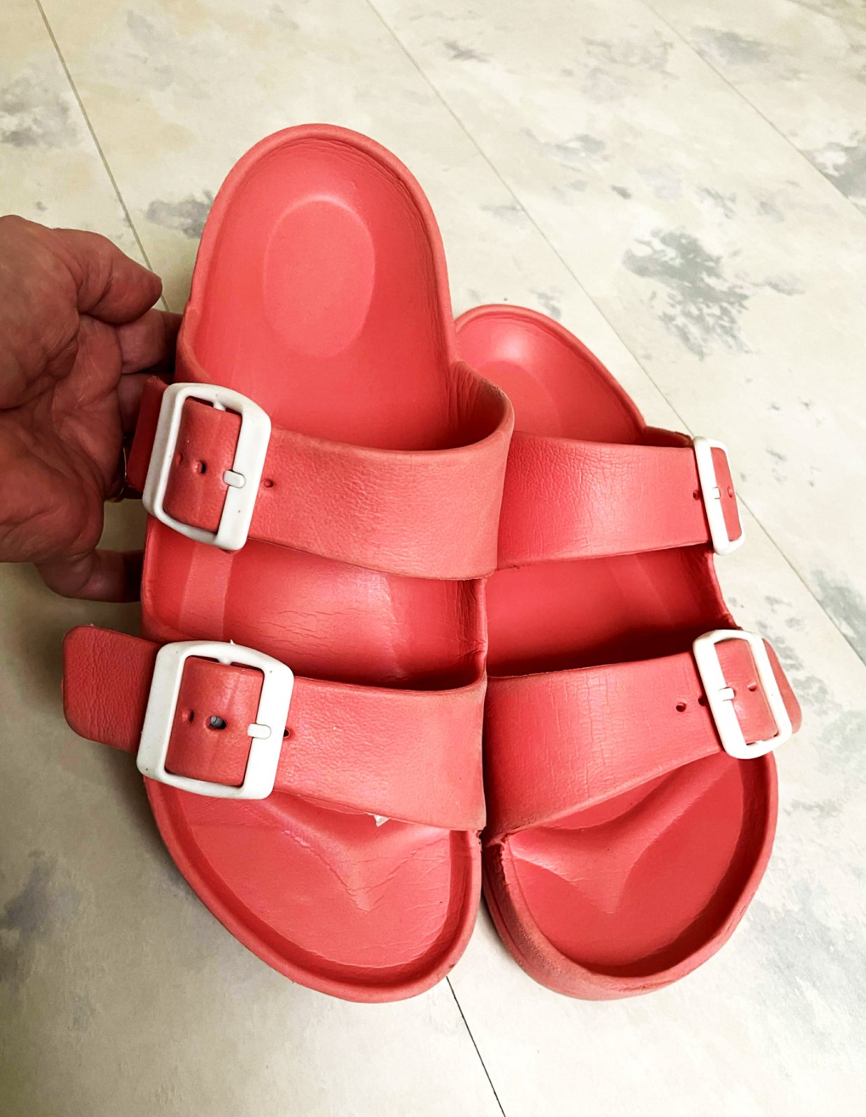 ľahúčke plastové šľapky, výborne tvarované - držia klembu,vhodné aj ako plážová obuv alebo na doma ako prezúvky,sú bez lepenia a prešívania