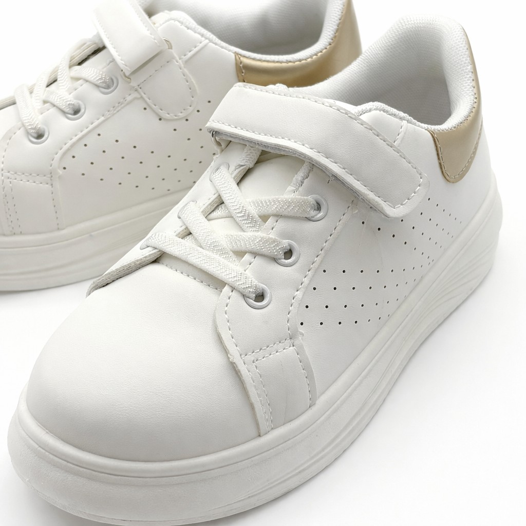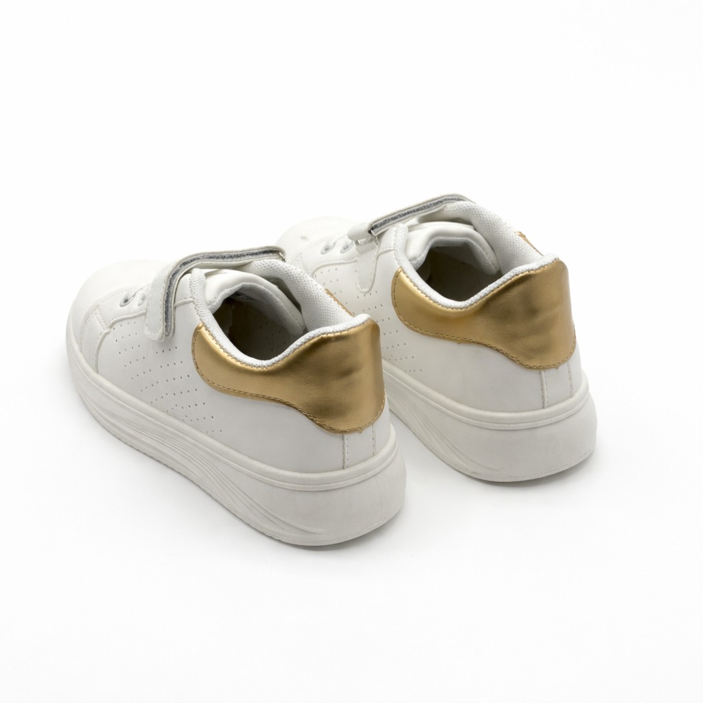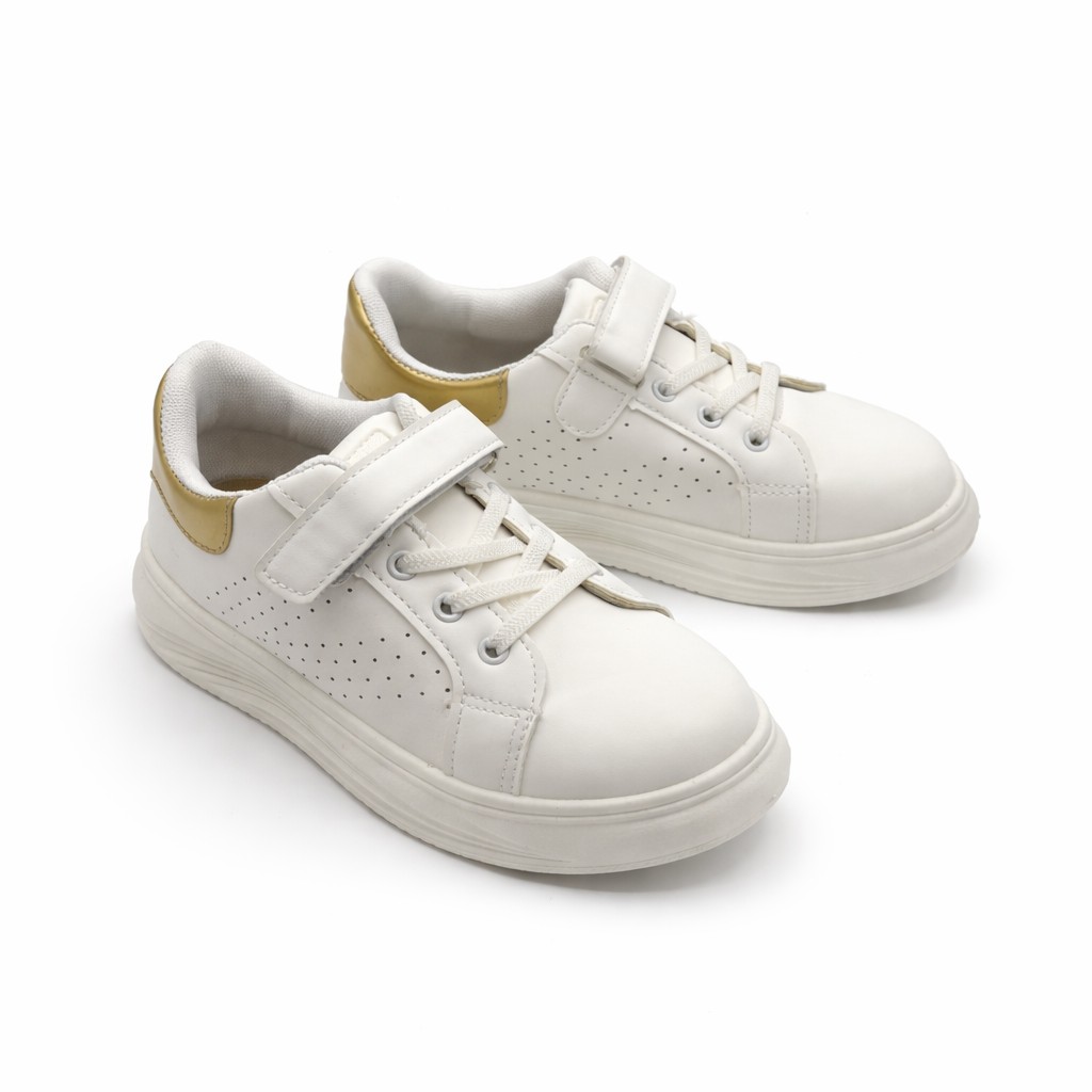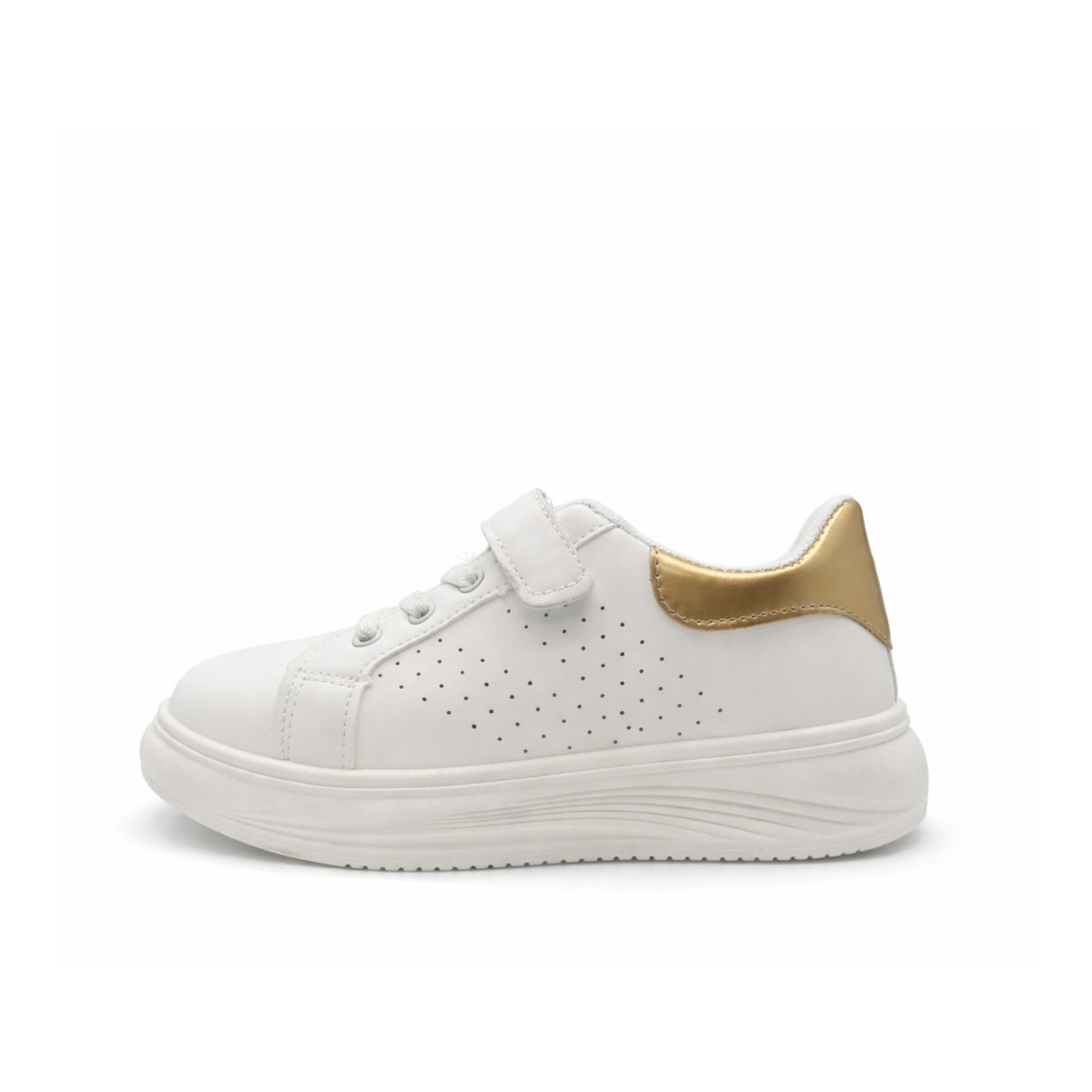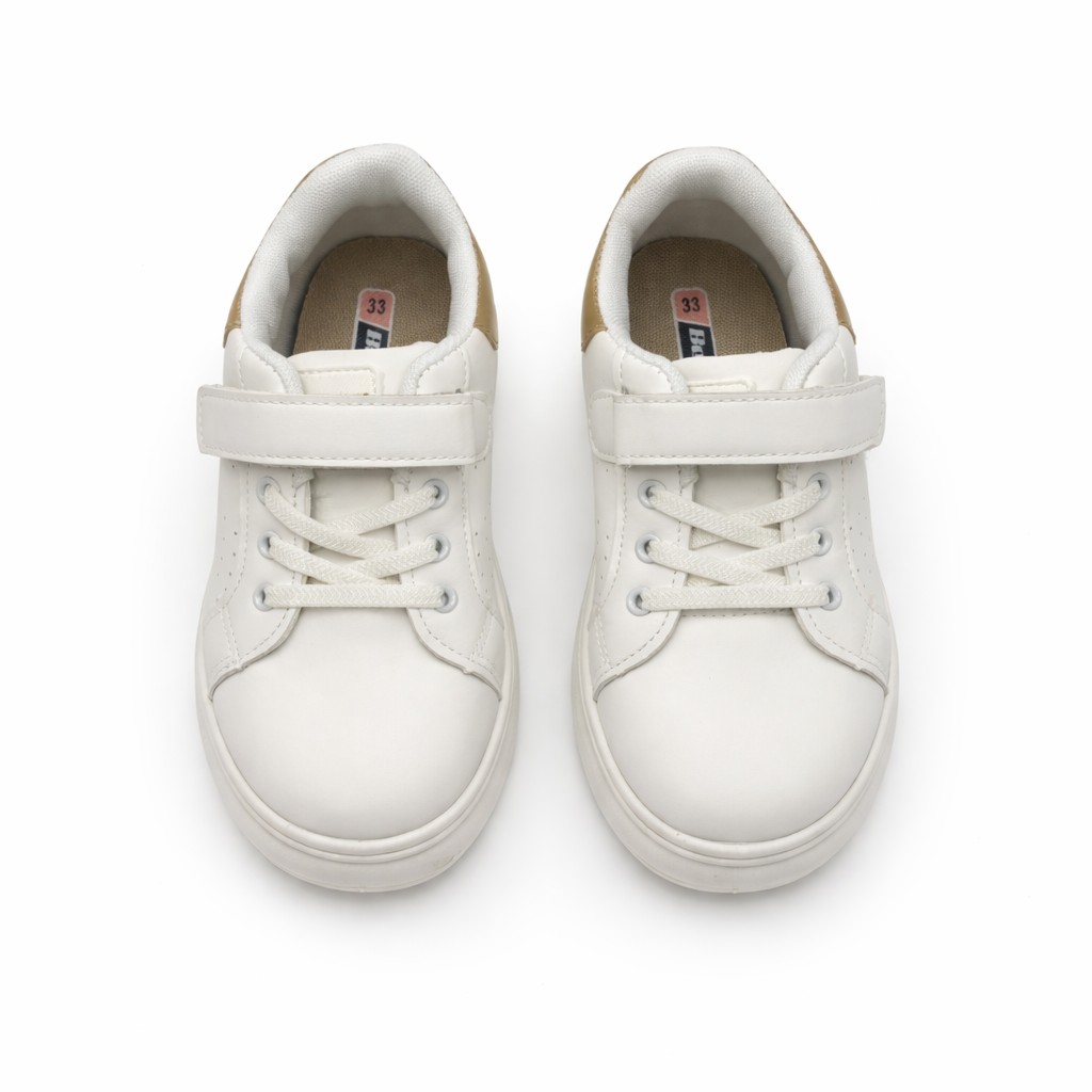 SkladomDetské tenisky Beppi 2211061 v bielej farbe so zlatým detailom na päte sú štýlovou a praktickou voľbou na každodenné nosenie. Jednoduchý a čistý dizajn sa ľahko kombinuje s rôznymi outfitmi, či už do školy, škôlky alebo na voľný čas. Perforované bočné časti zabezpečujú lepšiu priedušnosť, čo zvyšuje komfort počas celého dňa. Mäkké polstrovanie a ľahká podrážka prispievajú k pohodlnému noseniu pri každom kroku.