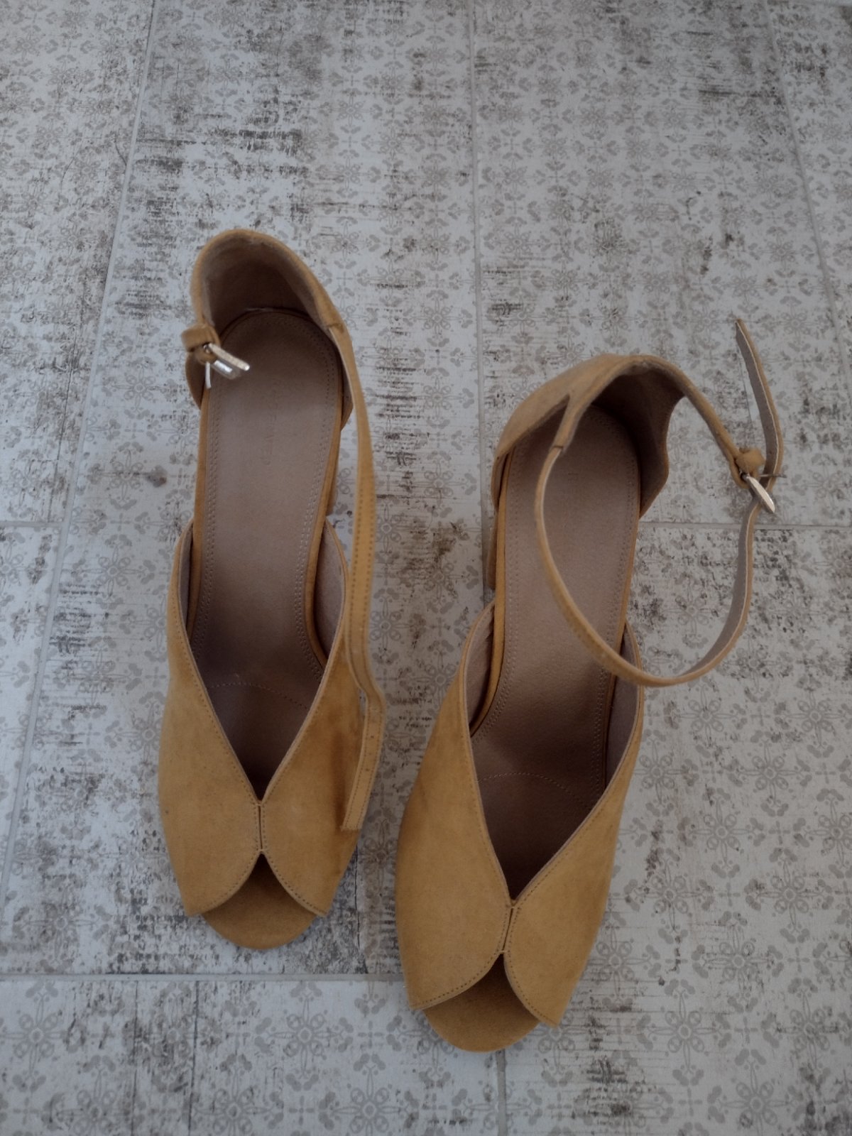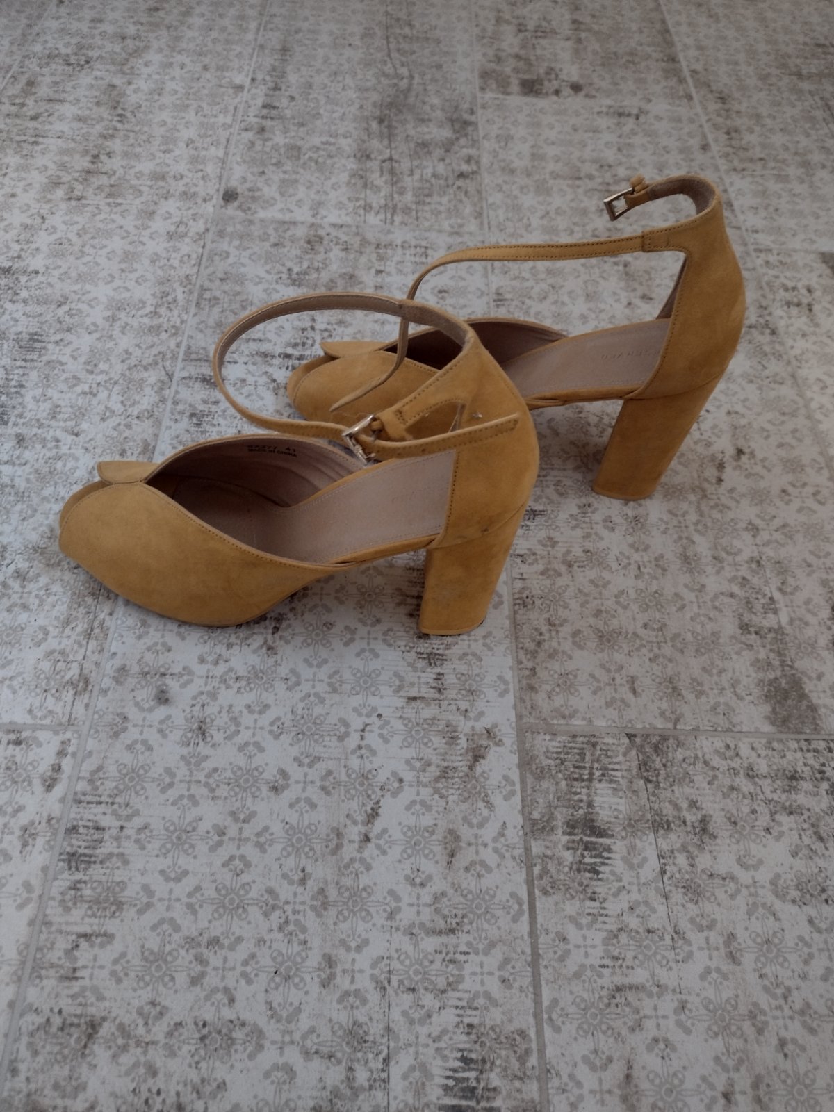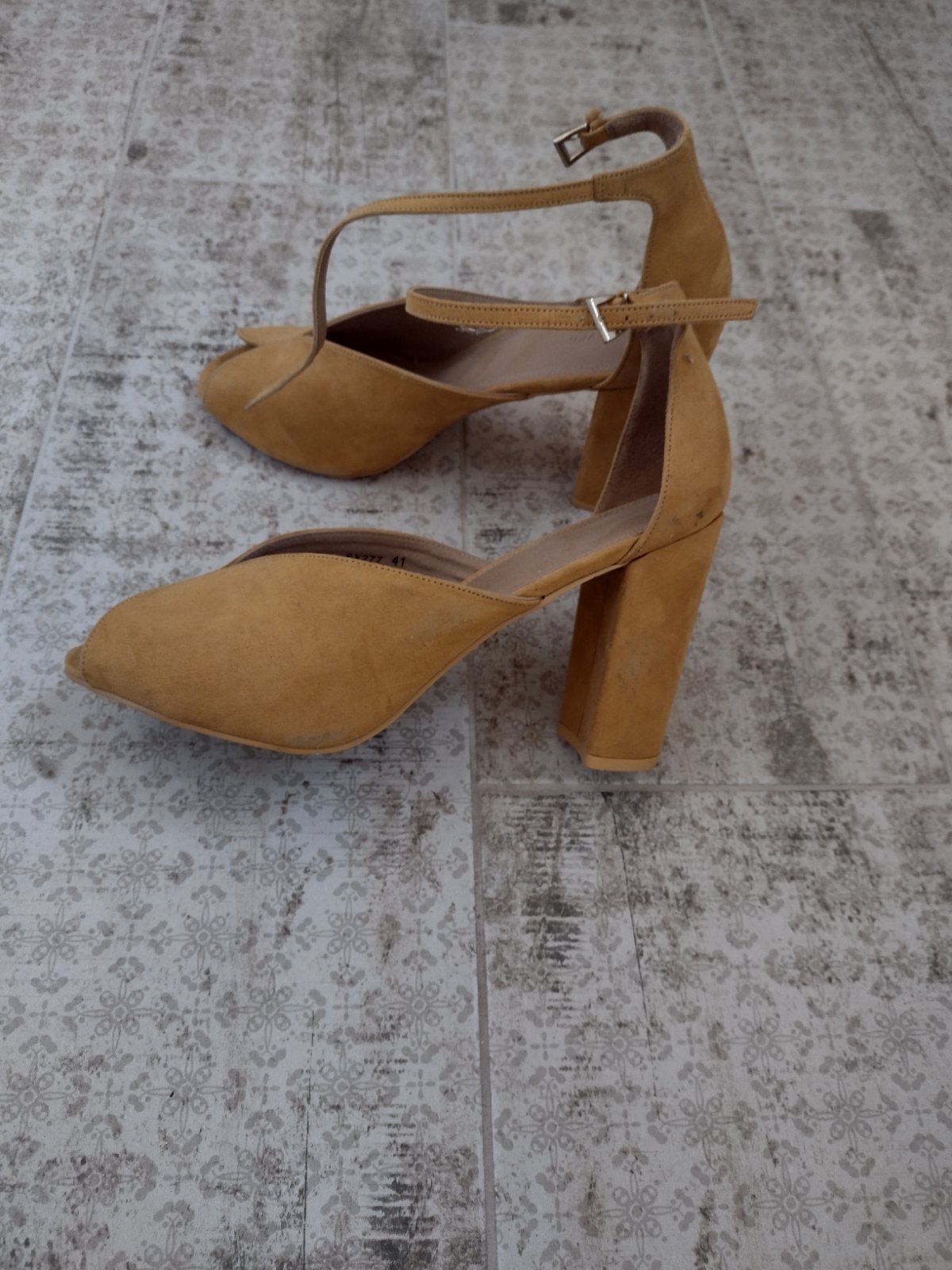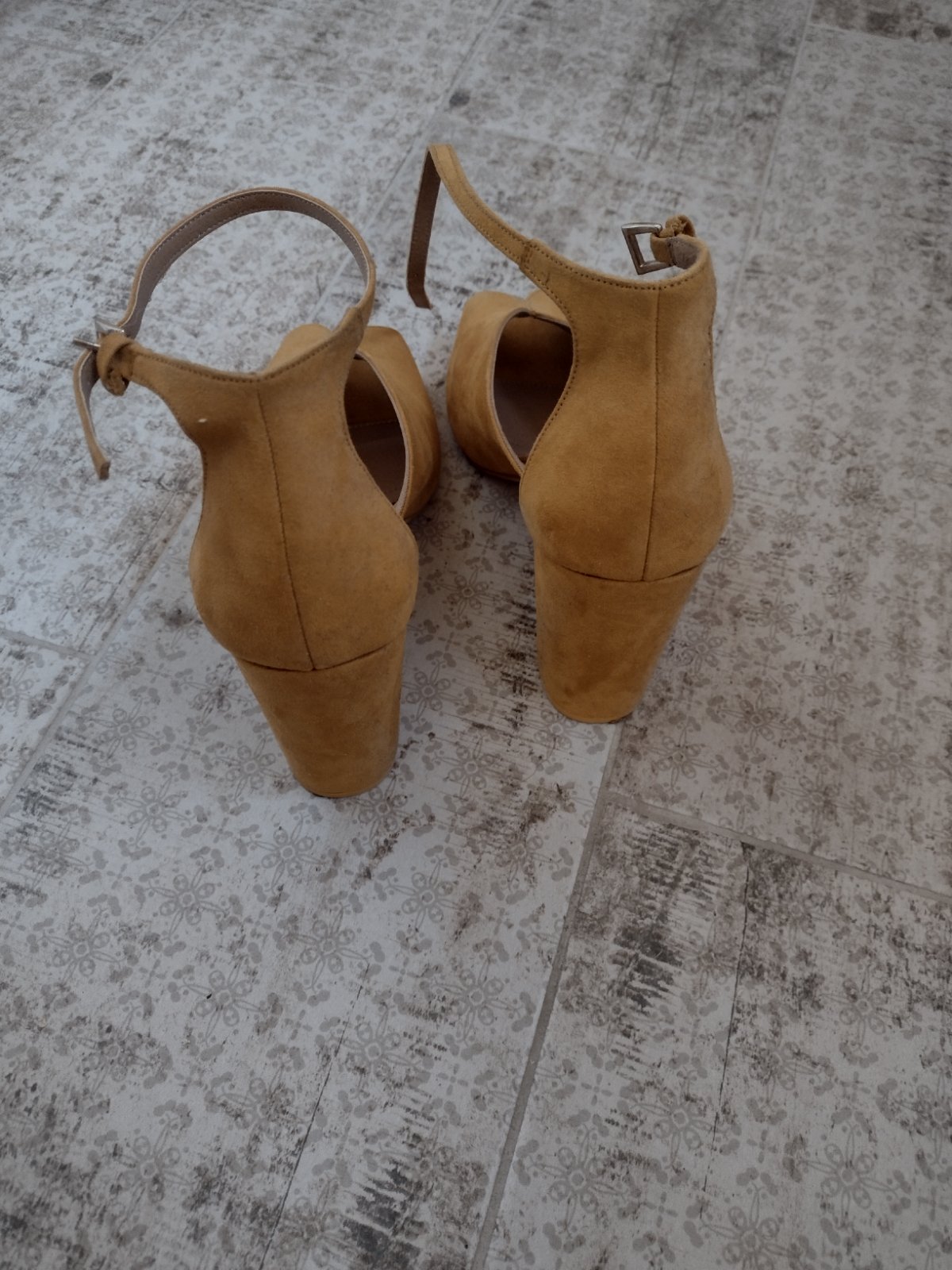 Iba vyskúšané, nenosené lodičky krásnej horčicovej farby vel. 41 VD 26,5cm opätok 12,5cm, platforma 2,5cm 8€+ pošta