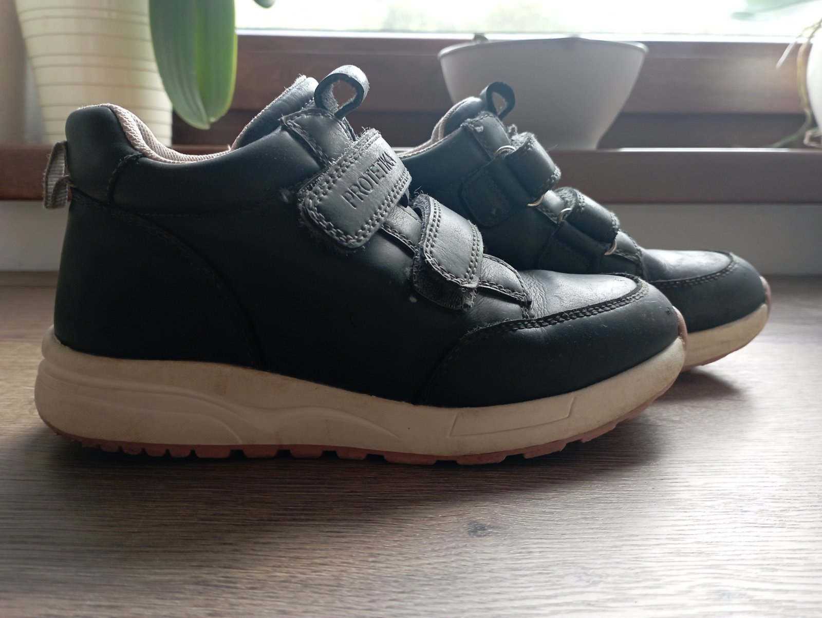 Krásne topánky, kožené tenisky Protetika 32, nosené bez vážnych poškodení, šúchanček vpredu, ako keby svetlejšia farba. Nafotené. Veľmi pohodlné, mali sme viacero veľkostí. Cena plus pošta.