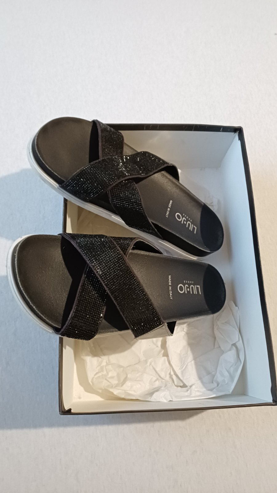 Krasne šľapky originál liu jo velkost uvedená 39 sedia na 38 trochu sa z vnútra lupu ale to je z vnu6slapky co není vidieť inak sú v super stave PC 129e
