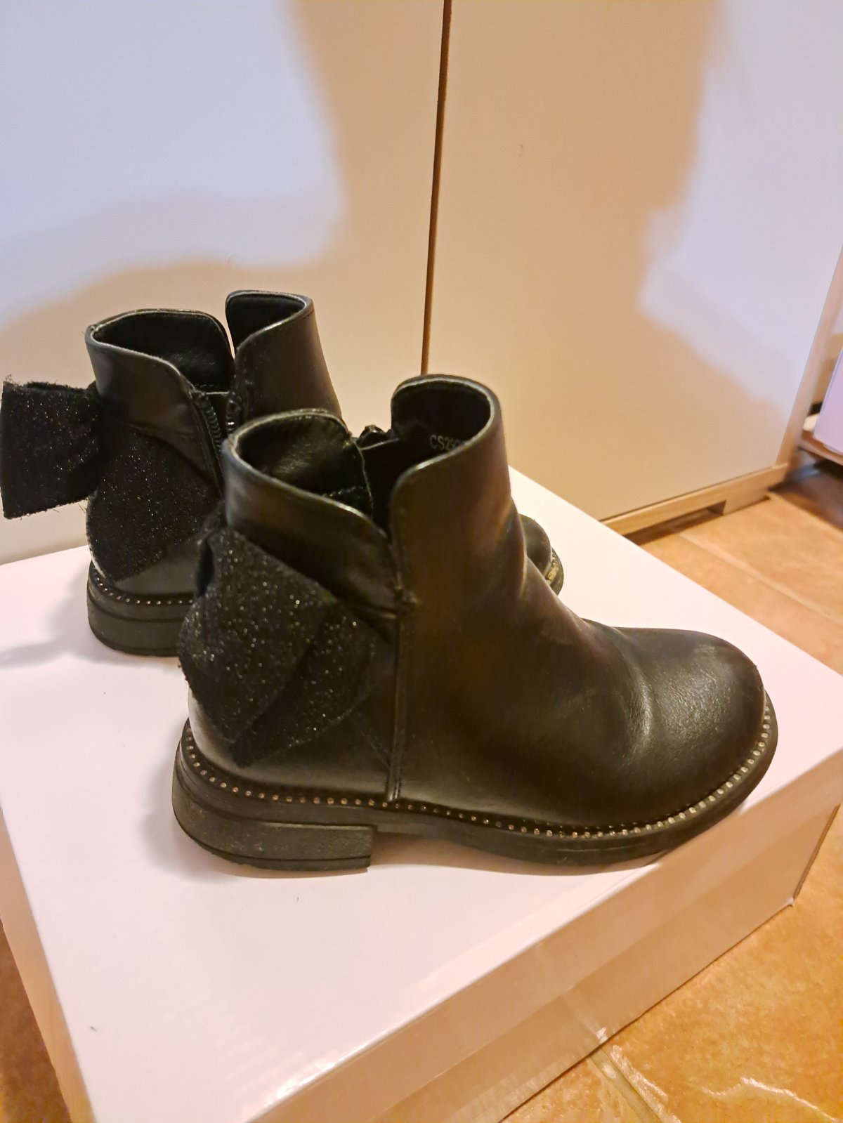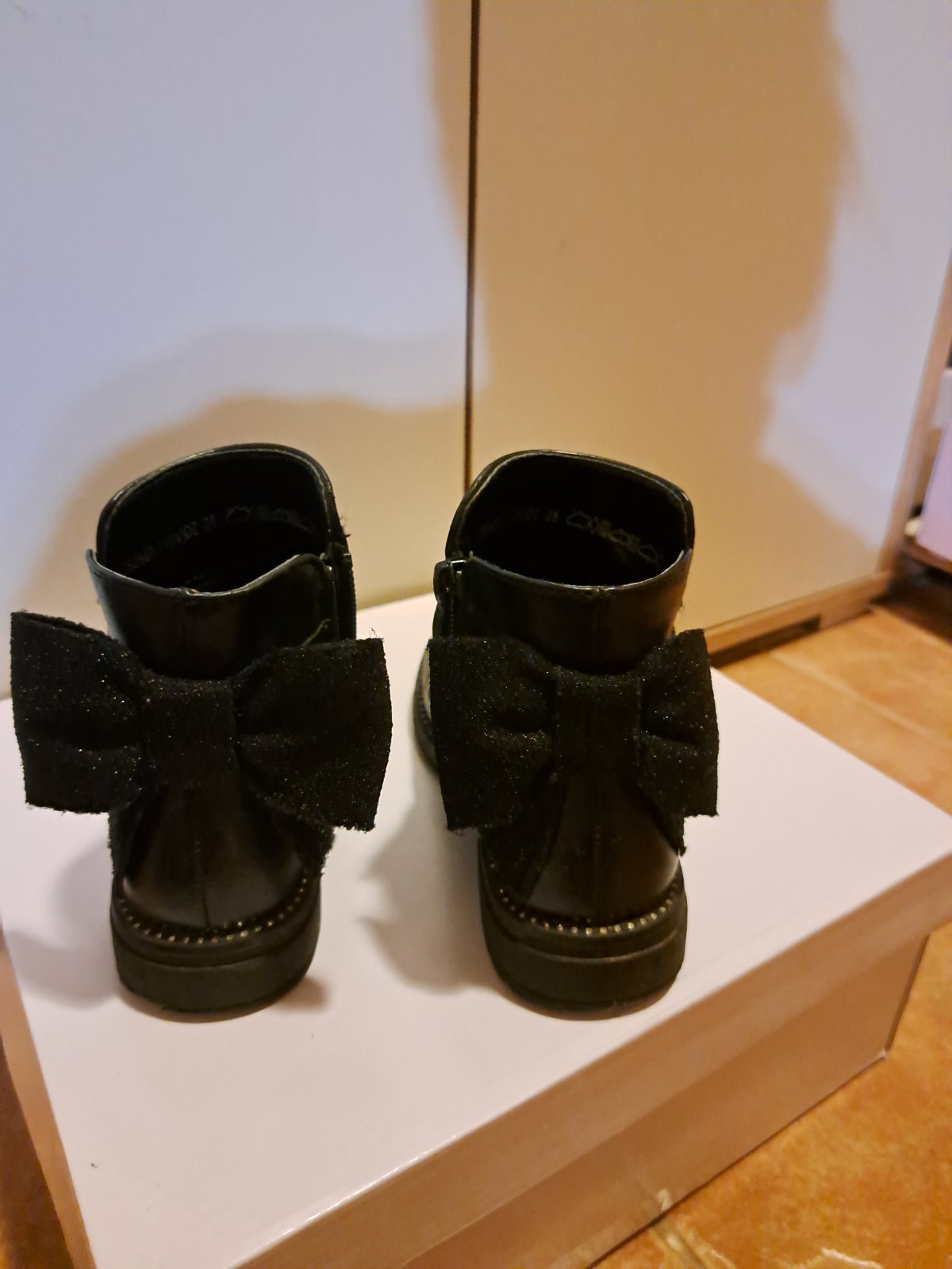 Pekné topánočky nad členky pre malú parádnicu. Vzadu majú mašličky. Sú jemne zateplené. Nosené asi mesiac.