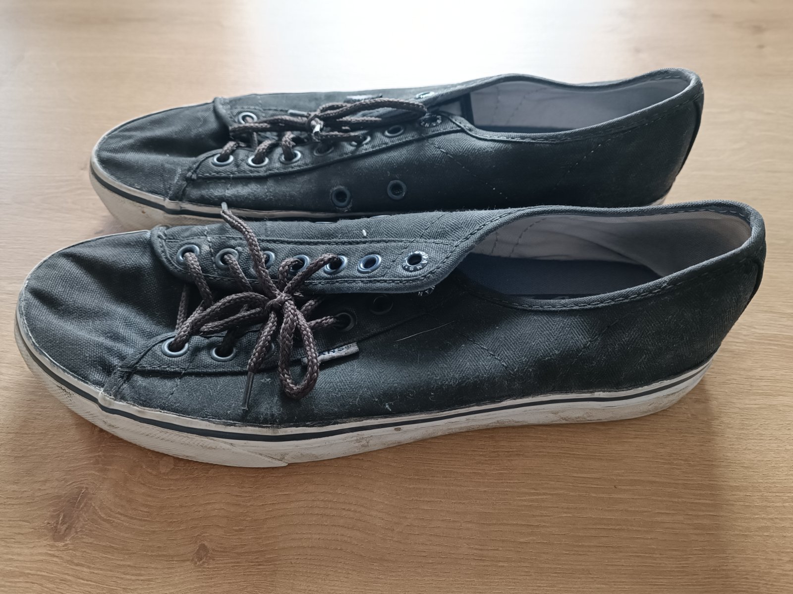 Po synovi.. nosenie vidno na najmä vzadu a na podrážke zboku, možno ešte treba lepšie vyčistiť, inak pekná čierna farba.