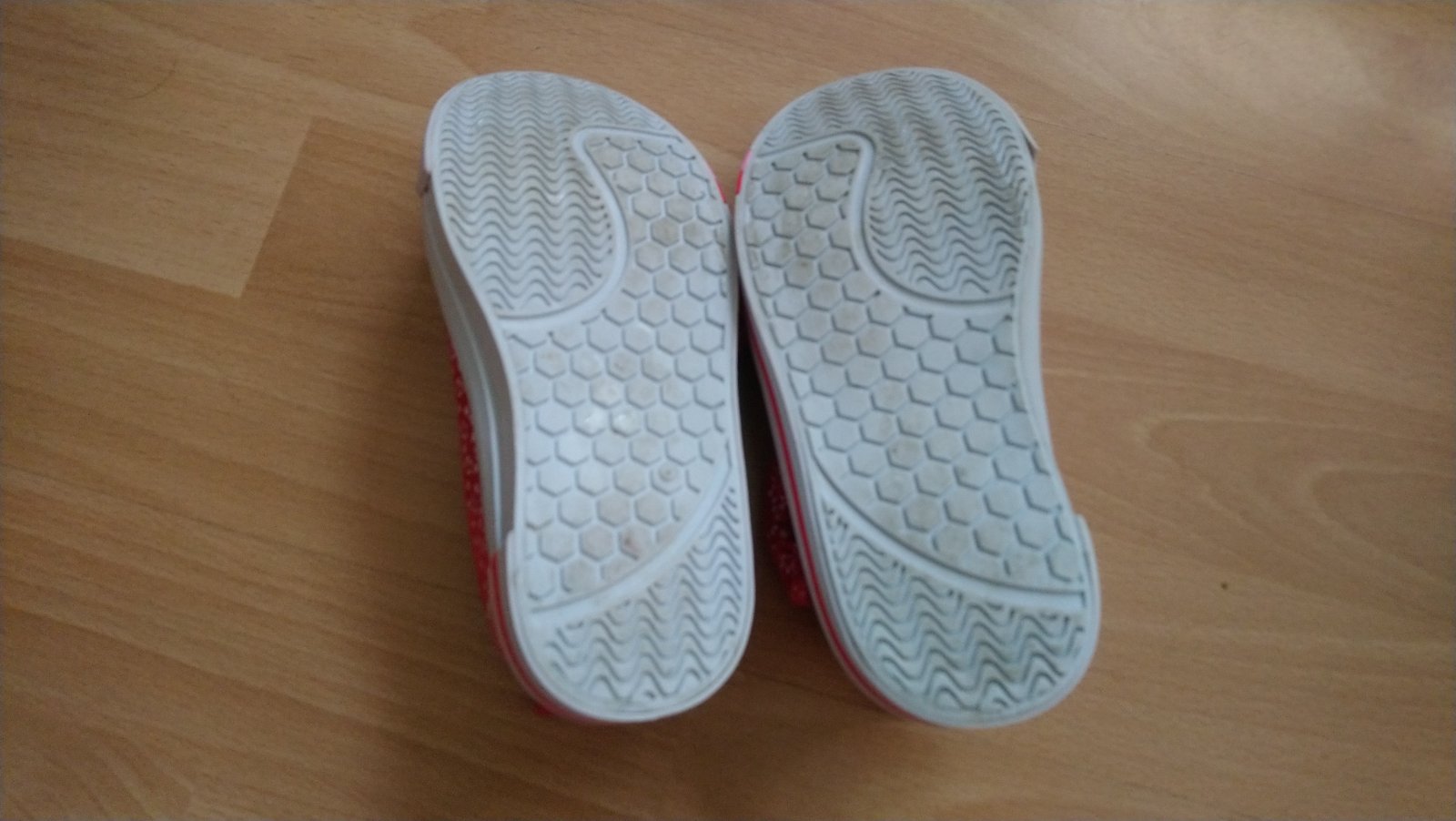 Pár krát obuté tenisky, napriek tomu biela časť zašpinená, vyčistené len vlhkou handrickou