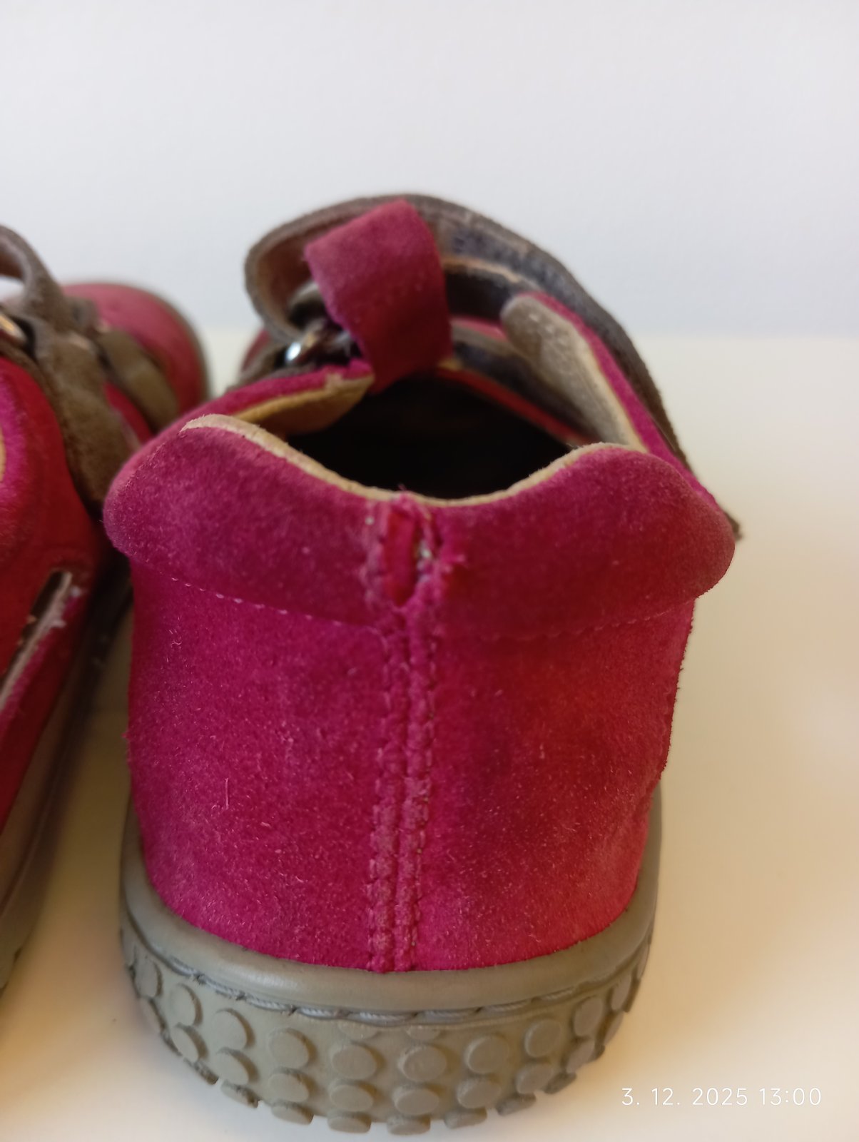 Legendárne Filli sandálky funčne vo veľmi dobrom stave, majú však estetické nedostatky. Gumený okop na pravej topánke má fliačiky, na oboch topánočkách hore na pate je pustený švík, ale ďalej sa nepára. Na dvor super. Cena prispôsobená.