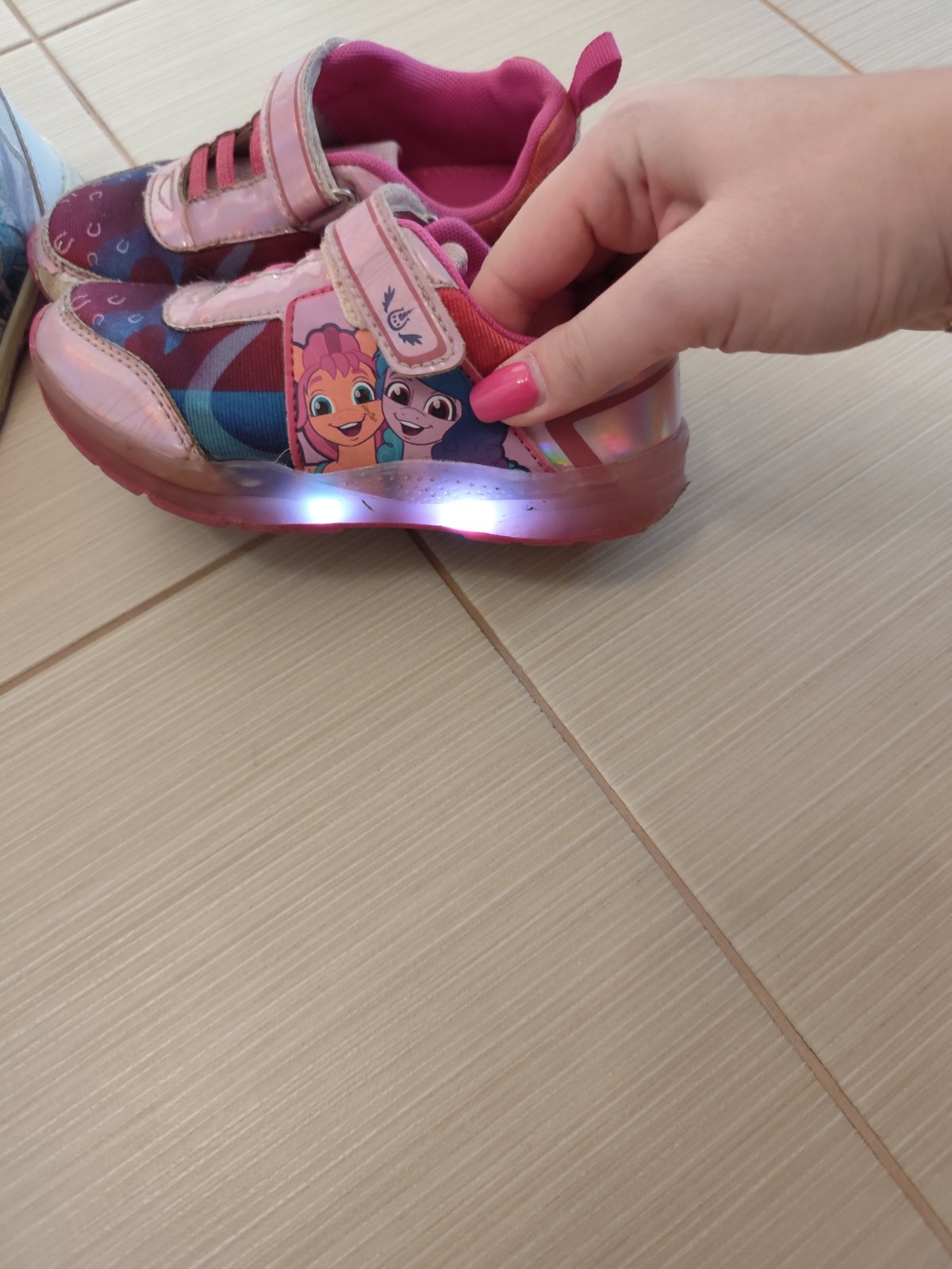 Tenisky majú už čo to odchodené no špičky si to odniesli najviac no na dvor poslúžia, lepačky držia na ochoch,Pony svietia obe