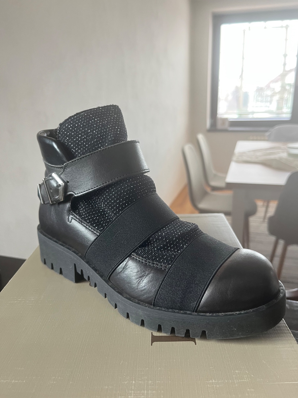 Topánky sú krásne, len som precenila veľkosť opätku :) Na mňa sú príliš vysoké, inak by som ich neposúvala ďalej. Popis aj foto je použité od pôvodnej predávajúcej. Dámske kotníčky LASOCKI. Nové s...
