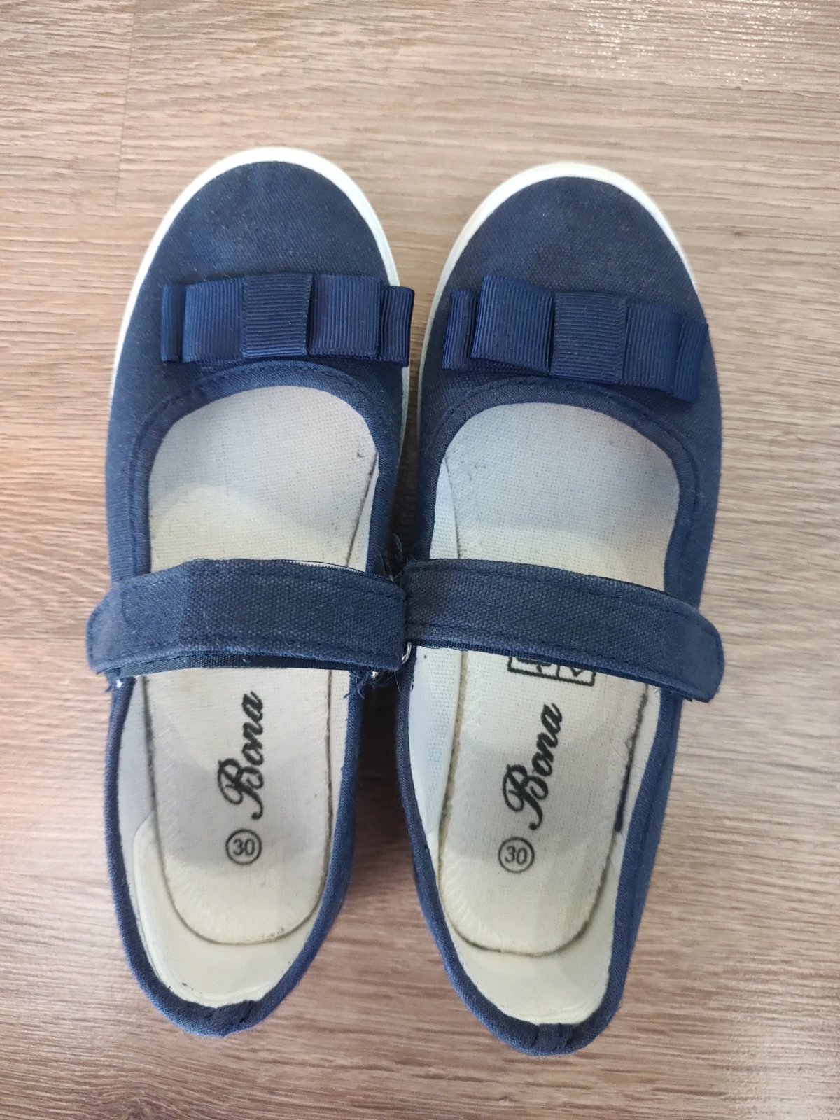 Párkrát obuté balerínky na suchý zips. Veľkosť 30, vnútorná dĺžka odmeraná na foto, podľa vložky cca 20,5 cm.