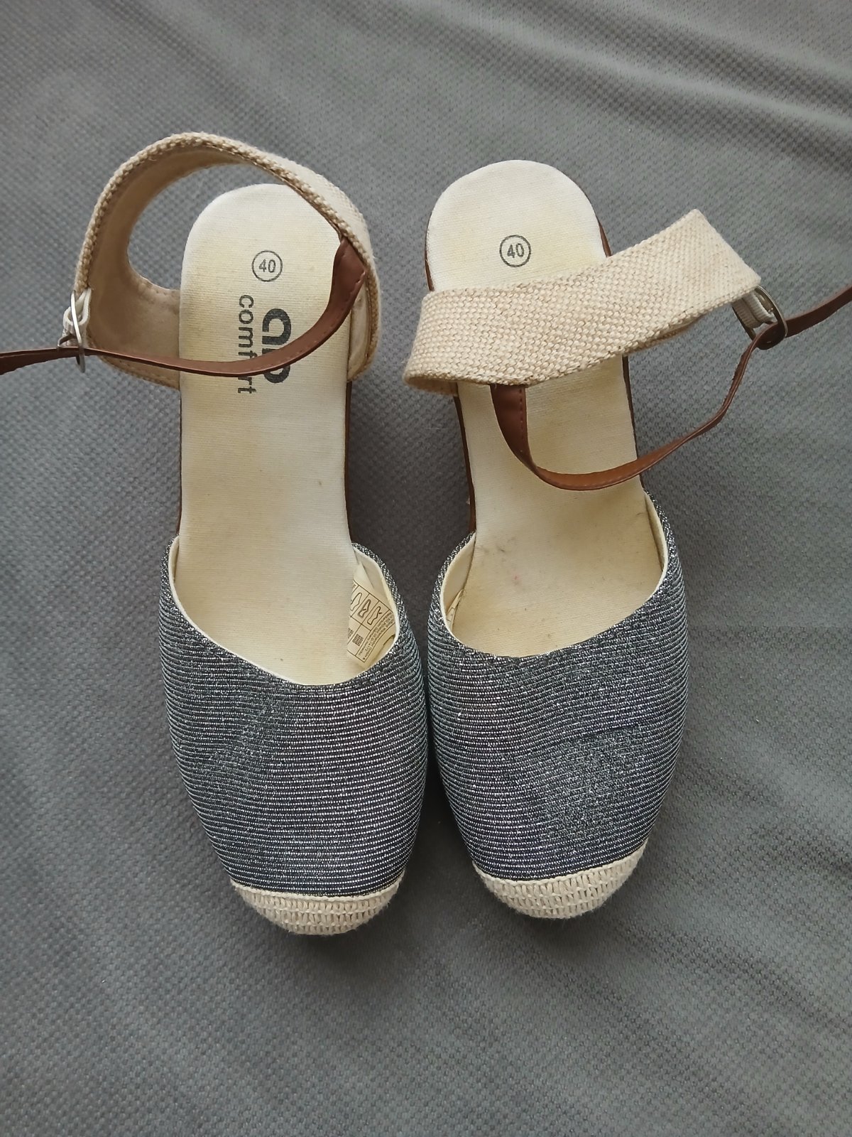 Jemné decentné sandalky s tenšími pásikmi v decentnej nude béžovej farbe. Veľkosť zodpovedá 40. Noha 25.5cm. Nosené menej. Opätky nie su veľmi vysoké. V ponuke rovnaké aj v čiernej farbe. Jemne koz...