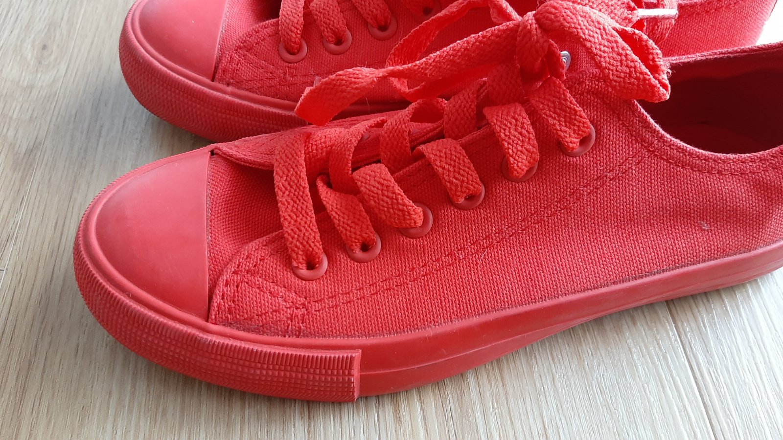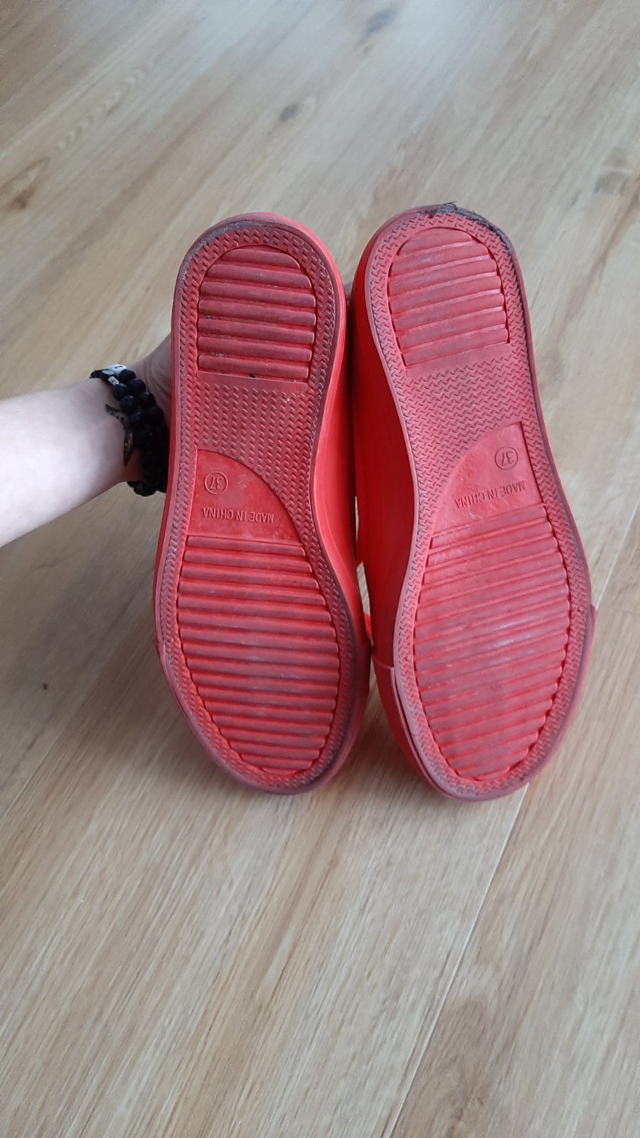 Krásne červené tramky, 2x použité, veľ.37. Farba je krásna jasná červená (fotka skresľuje farbu - ťažko odfotiť)