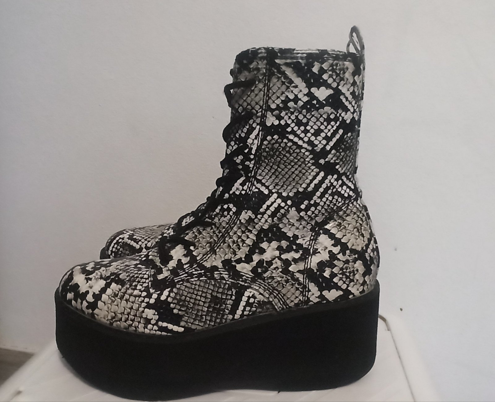 Topánky kupované ako nové tu na MK. Mala som ich raz na nohe. Majú úzky strih. Výška platformy v najvyššom bode 6,5cm. Celková výška 25cm.
