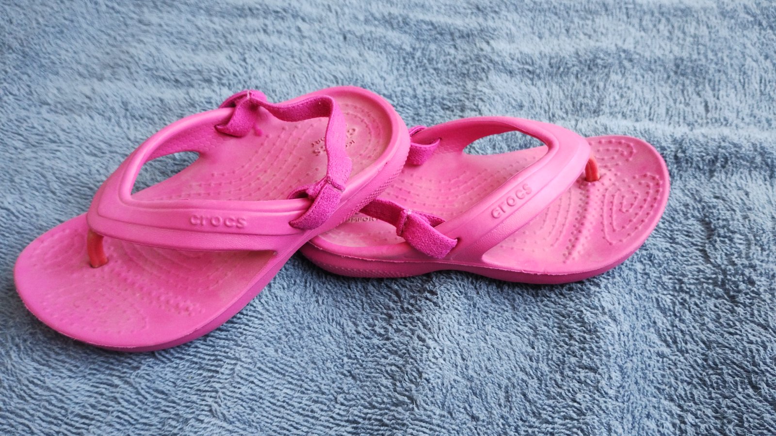 Super ľahučké crocsy nosene, ale v dobrom stave (z vonkajšej strany krokodíl troska ošúchaný) inak nemajú poslkodenia Veľkosť 4/5
