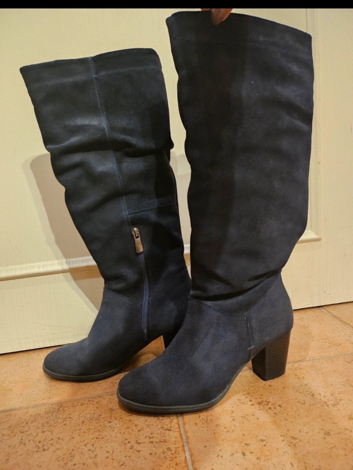 Ponúkam na predaj v top stave kožené (brusenej) čižmy vel.37. Kúpené v Humanic. Hrubší opätok, na boku zips. Cena je 12eur + poštovné prevodom 4,70e doporučene ako balik na poštu