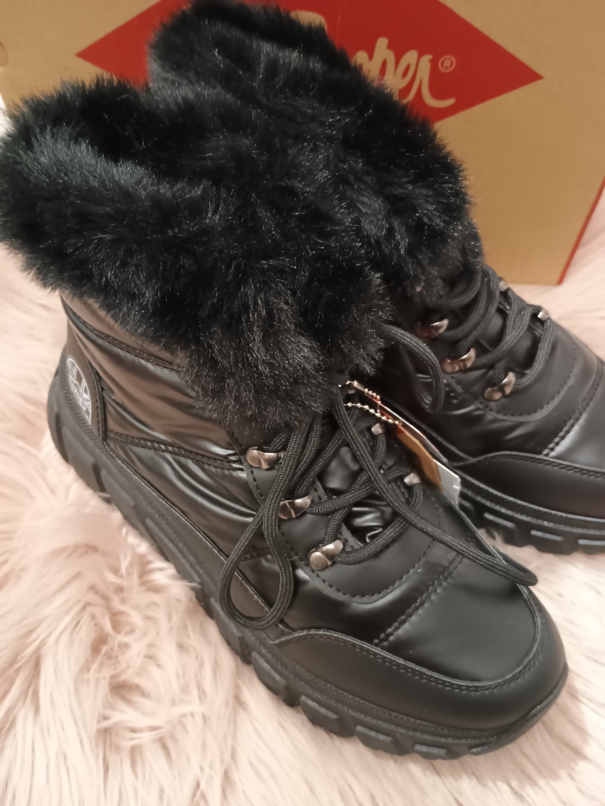 Tento model osloví mnoho milovníčok pohodlnej a teplej obuvi. Dámske topánky značky Lee Cooper sú v čiernom odtieni, so zateplením, vďaka ktorému budete mať nohy po celú dobu nosenia v teple. Topánky sa zaväzujú na šnúrky pre pohodlné obutie a utiahnutie podľa potreby. Ozdobou je logo značky na bočnej strane. Topánky vyrobené z eko kože. Skvelý model na jesenné a zimné dni! Rozhodne by ste ich mali mať vo svojom šatníku.