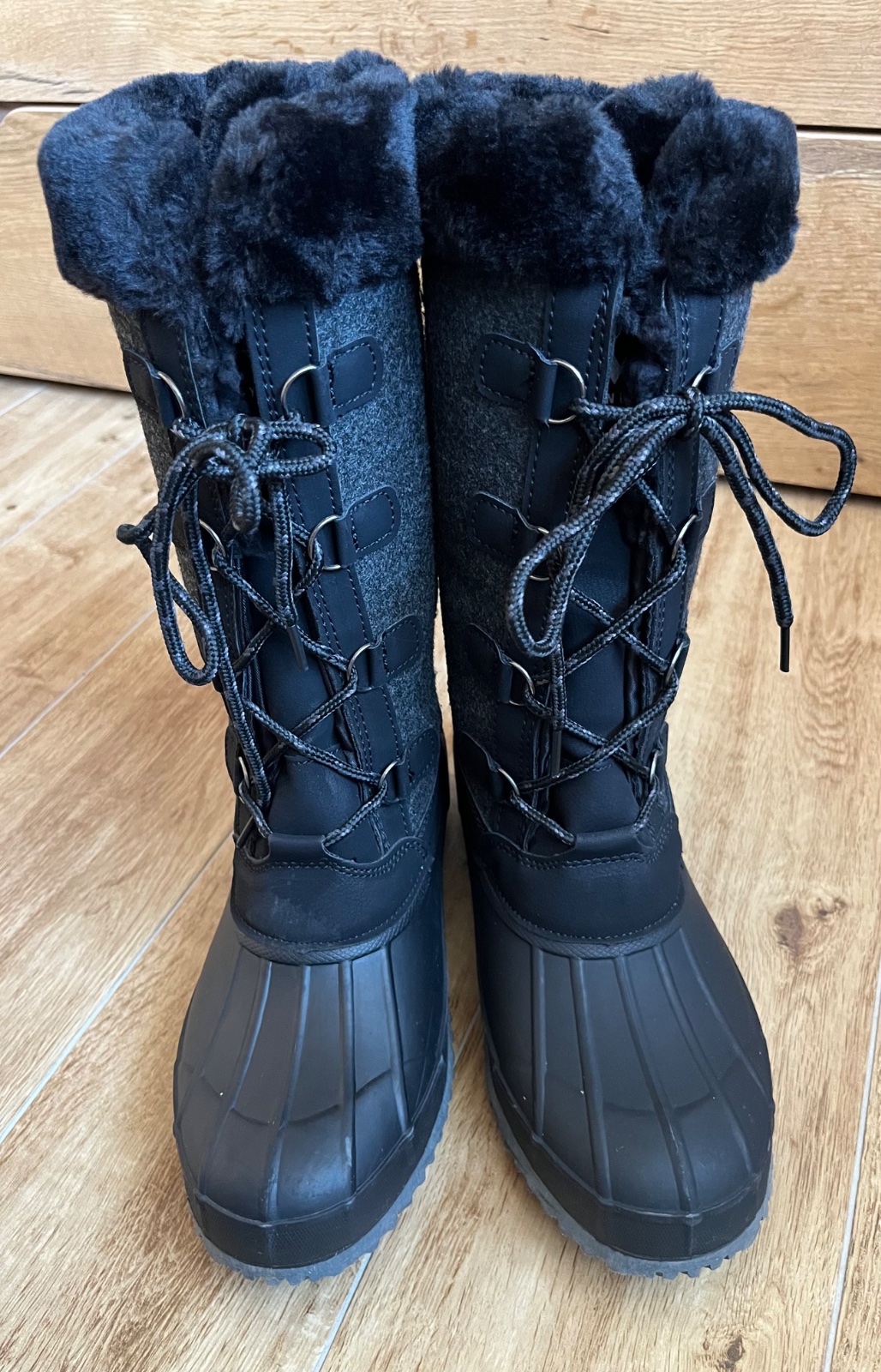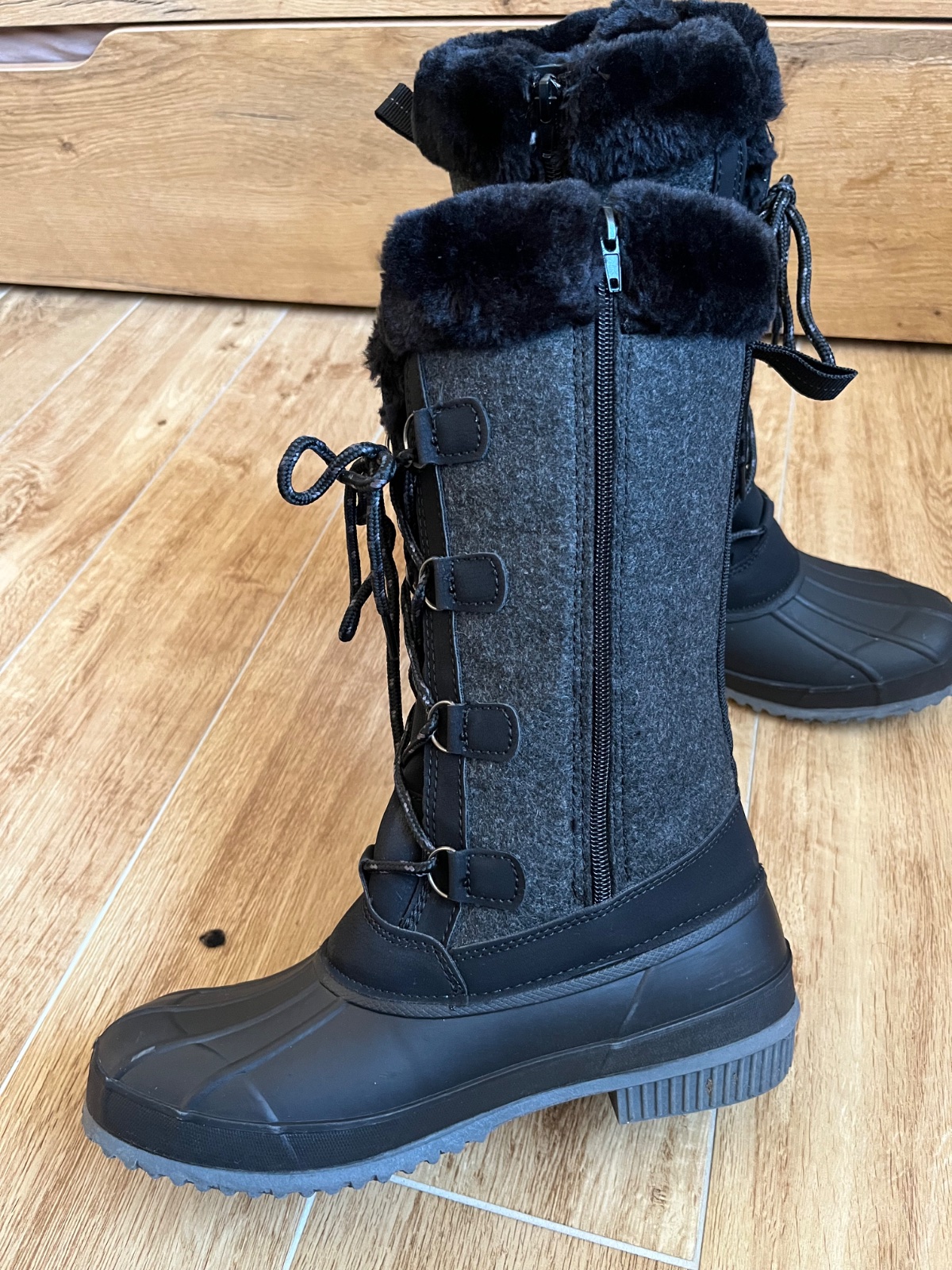 Použité len jedenkrát na zimnej dovolenke, inak nenosené, stav ako nové, zvnútra zateplené. Na zips aj šnurovanie. Vo vnútri topánok boli na pôvodných vložkách použité ortopedické, takže originálne boli nimi chránené a nepoužité.