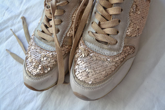 Flitrové tenisky, málo nosené, veľmi dobrý stav. Udávaná v 39, ale sedia na 38 -38,5 , vn D 24,6 cm.