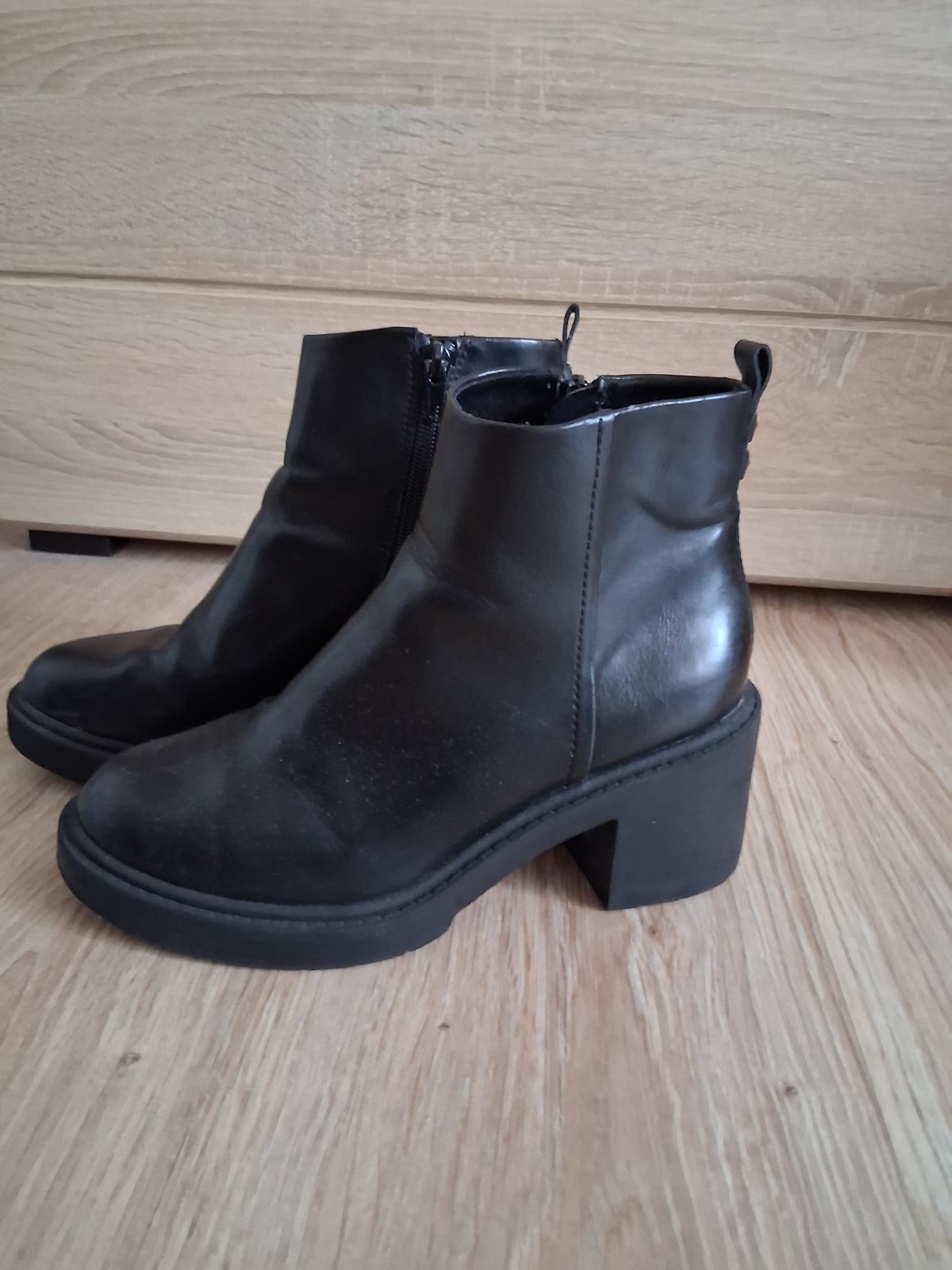 Pohodlne clenkove topánky s jemným filtrom.Vhodne na jeseň a miernu zimu.Nosene,ale vo výbornom stave.