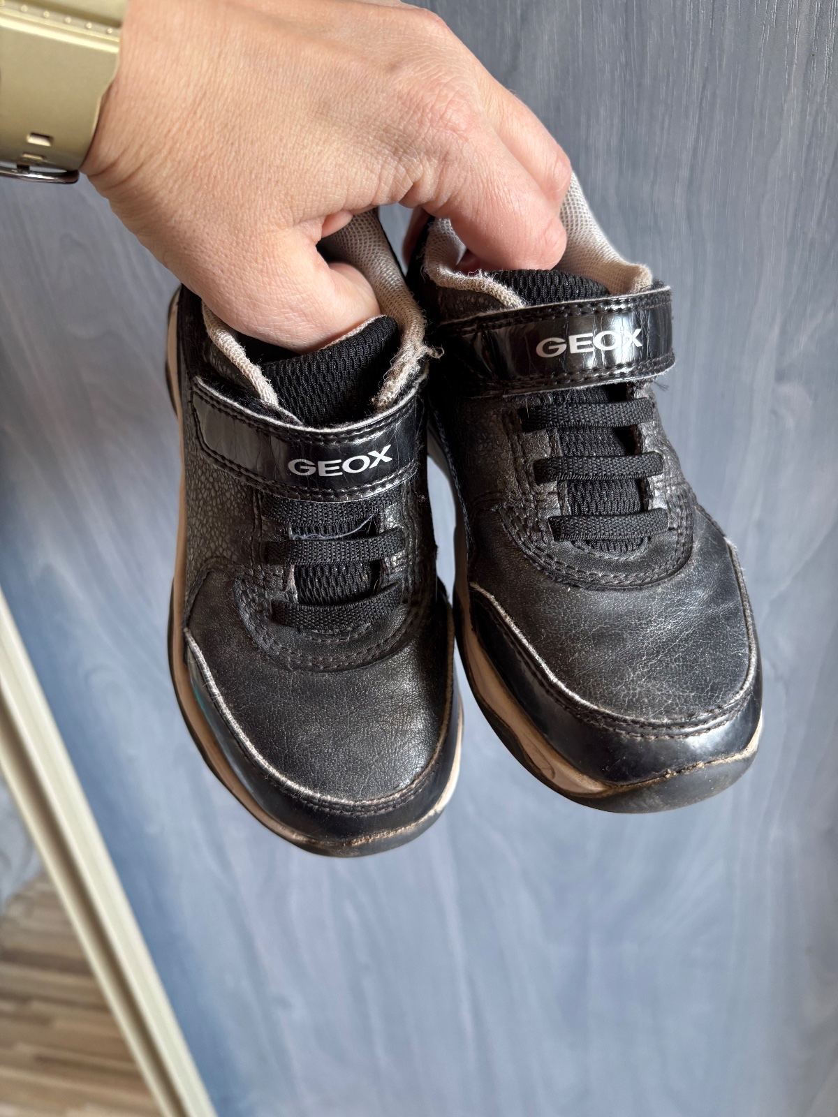 Super pohodlne kvalitne vysoké kožené topánky / ženičky. Obute tak 10-20x. Nemajú žiadne poškodenia, iba tá guma má take fľaky, neviem z čoho to je, aj iné geox sa mi takto hneď zflakoveli. Možno...