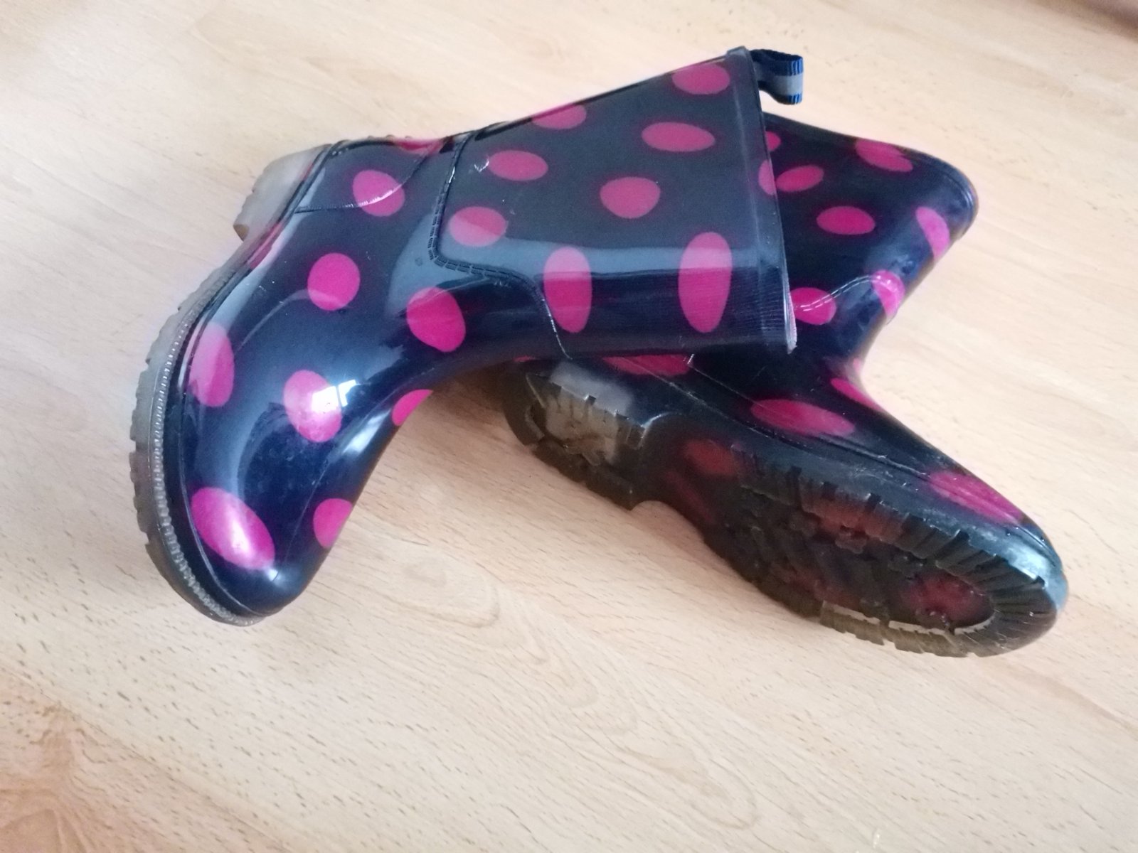 Predám tieto pekné gumáky v dobrom stave. Sú tam nejaké škrabance, pravá nebliká. Nemajú dierky, či iné vážne poškodenia.