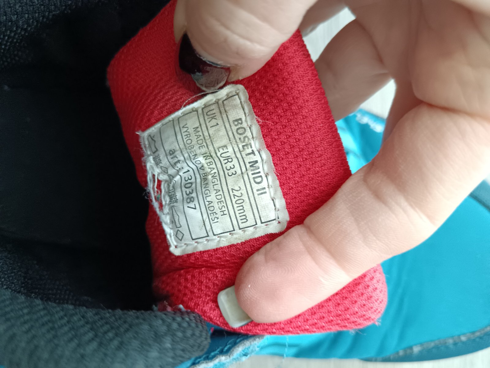 Detská športová outdoorová obuv s membránou Aquabase a rýchlo šnurovaním. Vnútorná dĺžka 22 cm. Nosená len pár krát.