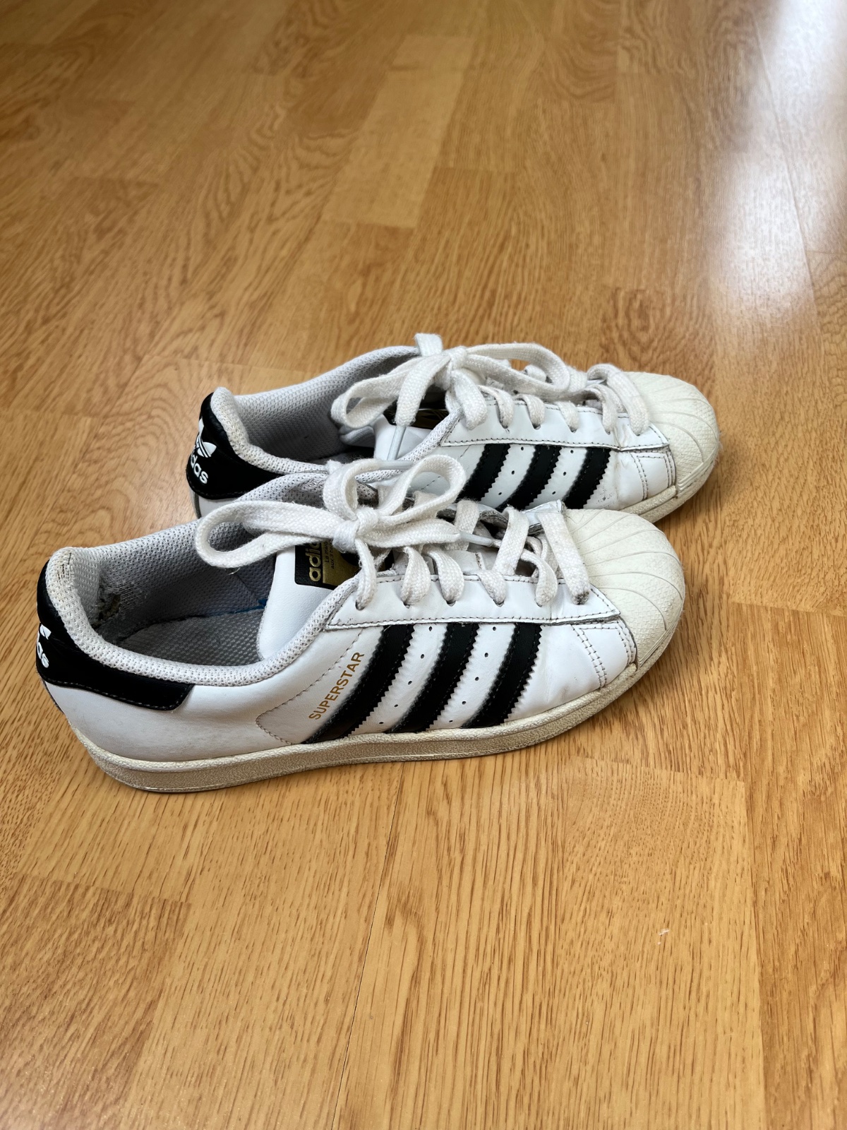 Darujem k nákupu tenisky adidas zn.superstar vel.36. Malé zodratia z vnútrej strany nad pätou vid.foto.