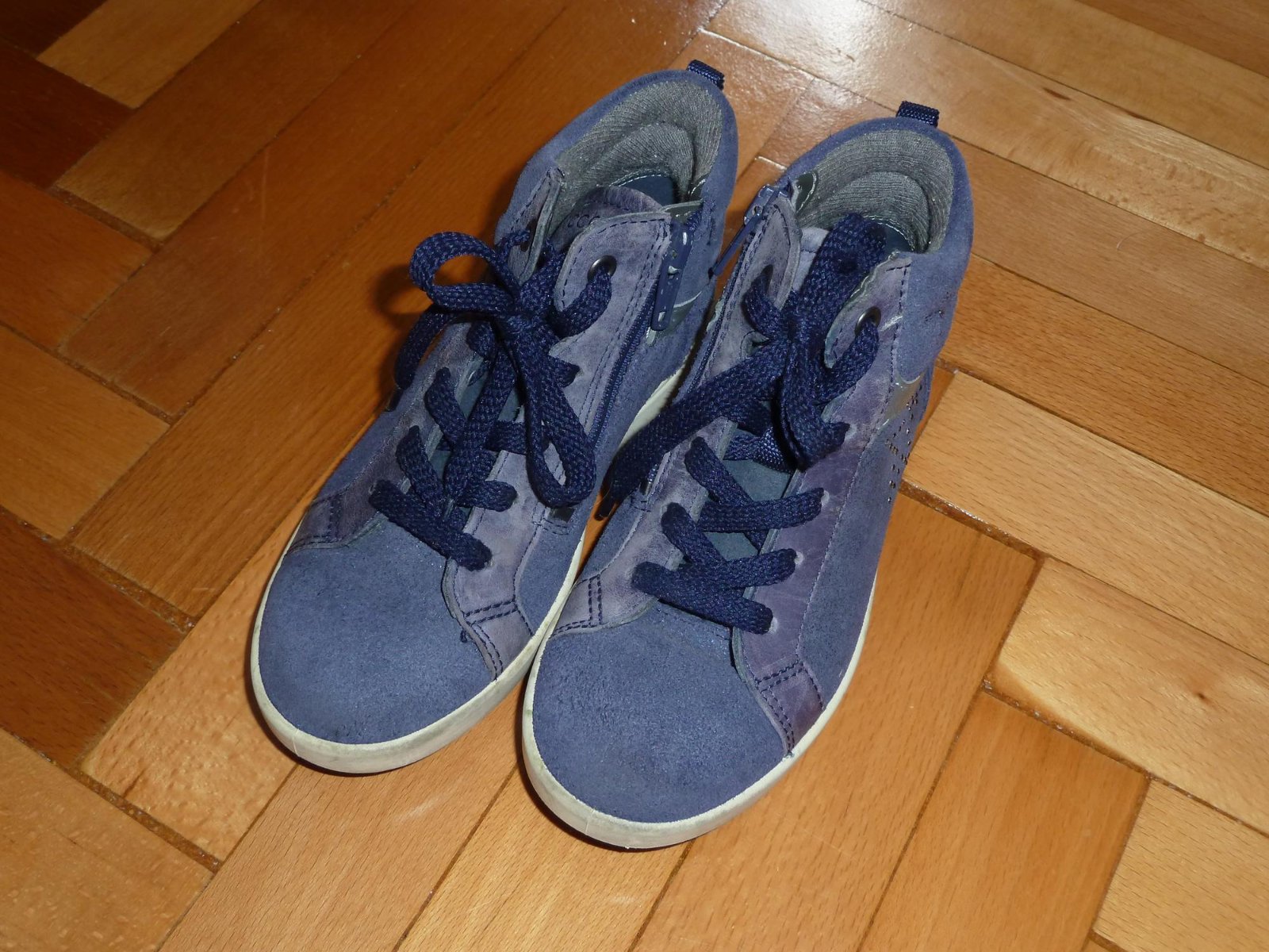 Kozene semisove topanky s hviezdickou v top stave, malo nosene, neschodene, maju snurky na viazanie, aj bocne zapinanie zipsom, kvalitna znacka. VD: 18,8 cm (merana vyberatelna stielka, nadoraz), vhodne skor pre uzsiu nozku.
