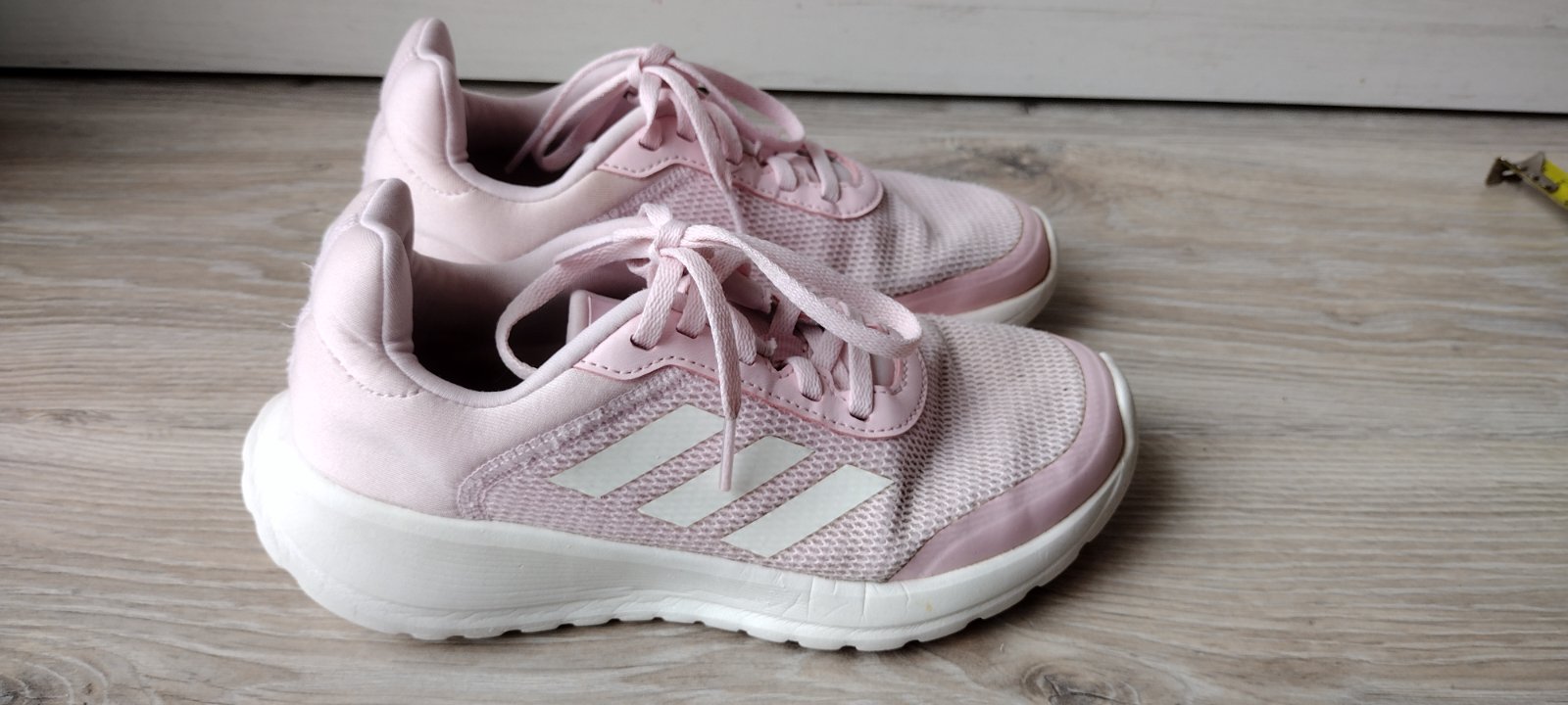 Krásne, pohodlné Adidas tenisky pre dievčatko v dobrom stave, nosené iba na telesnej. Sú ľahké, vzadu zvýšená platforma a dobre sa obuvajú..Vnútorná dĺžka je 21cm.