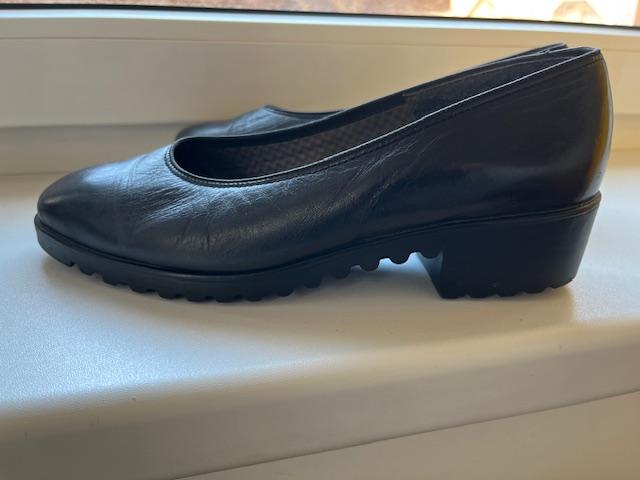 Topánky sú veľmi pohodlné, kožené, stabilné, vo veľmi dobrom stave hlavne zvonku, vo vnútri majú v mieste bočného prstu prešuchanie fútra, čo vidieť na tretej fotke, ale zle sa fotilo. DL. 25 cm. Značka myslím , že bola ara, ale je to nevidieť.