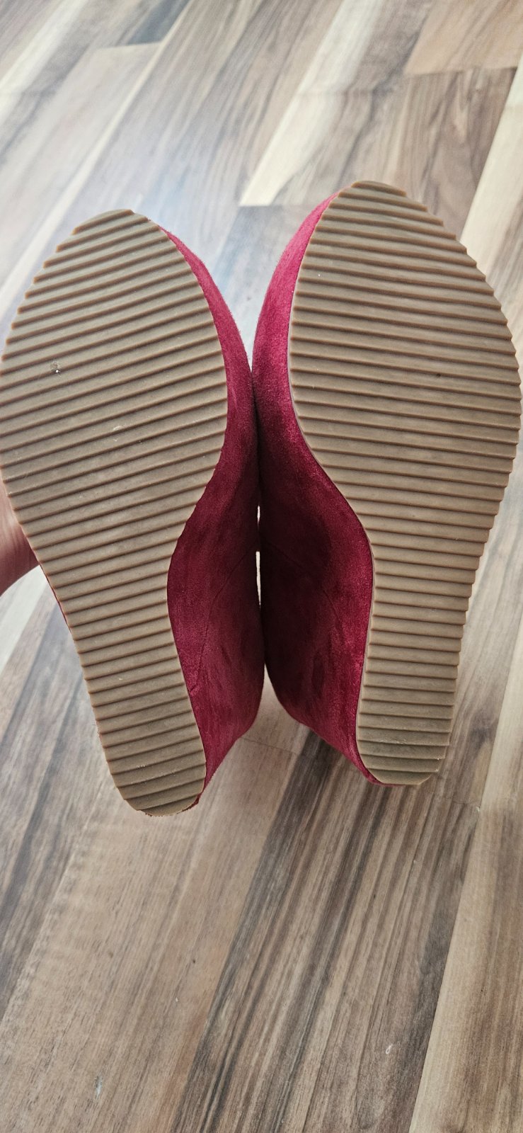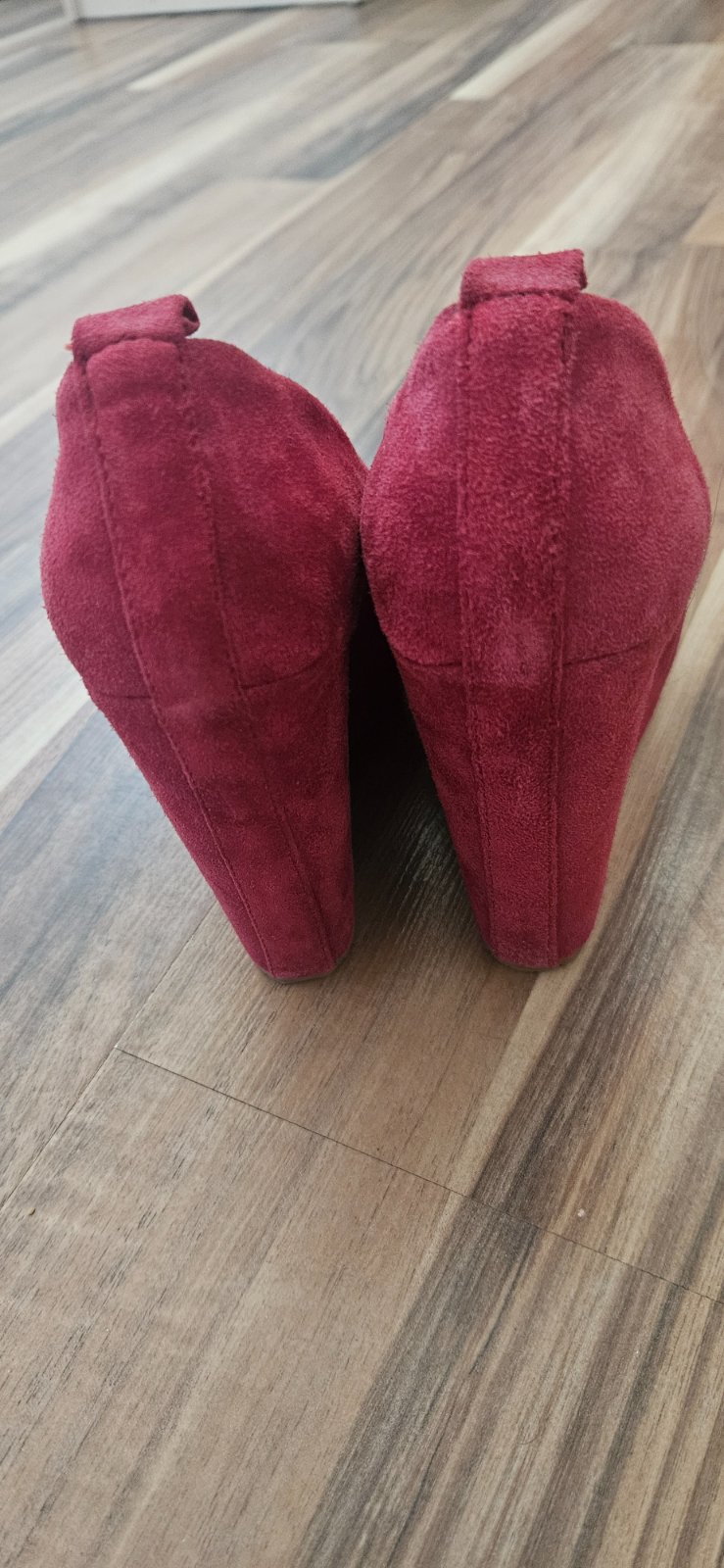 Popis: Elegantné lodičky v krásnej sýtej bordovej farbe. Majú skrytú platformu, vďaka čomu sú napriek vysokému podpätku stabilnejšie a pohodlnejšie na nosenie. Ideálne na oslavy, svadby alebo večer do mesta.