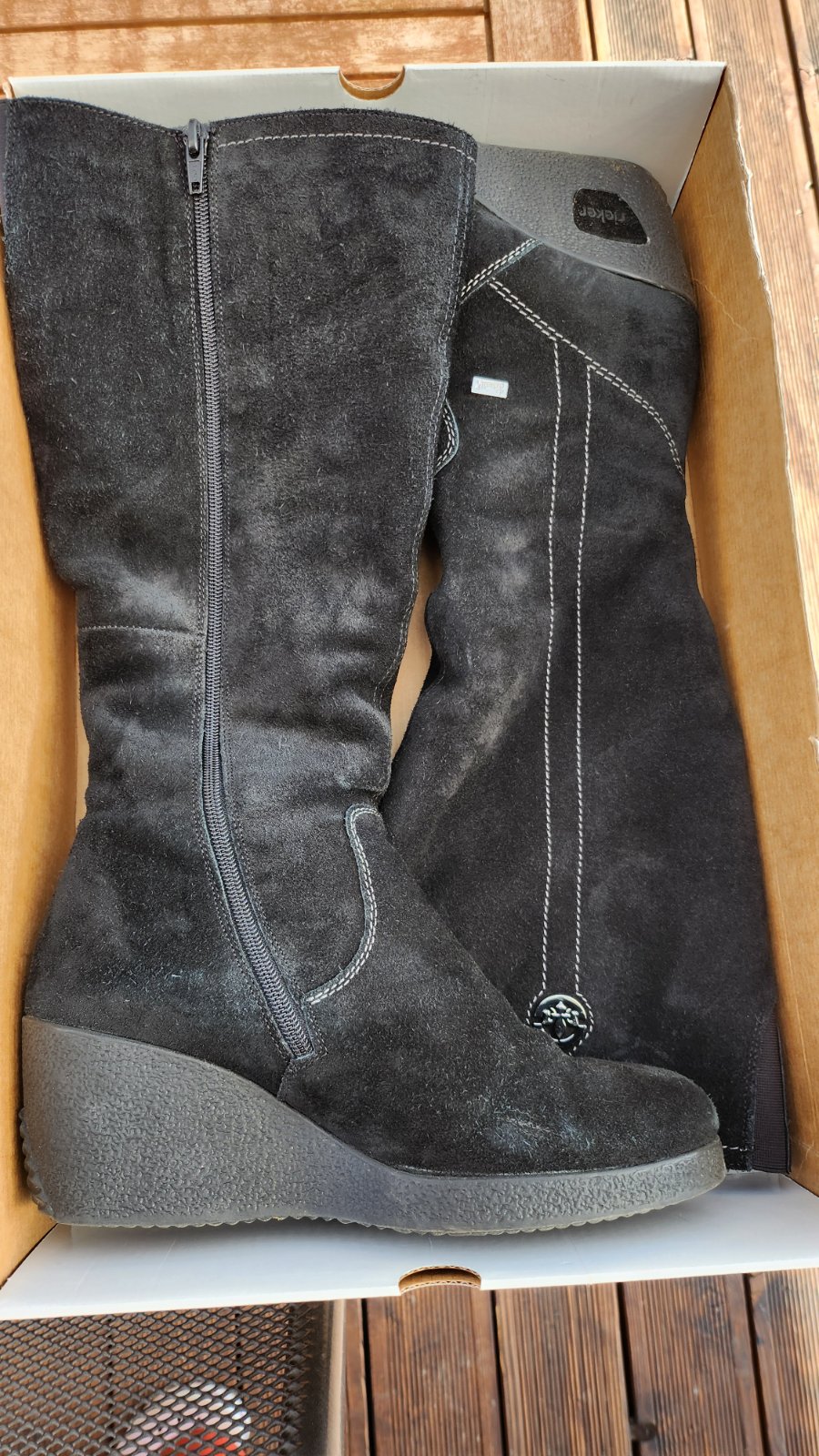 Kvalitné čižmy zateplené ovčou vlnou, vhodné aj na širšiu nôžku. Veľkosť je uvedená 41, no skôr sedí na 40. V skvelom stave.