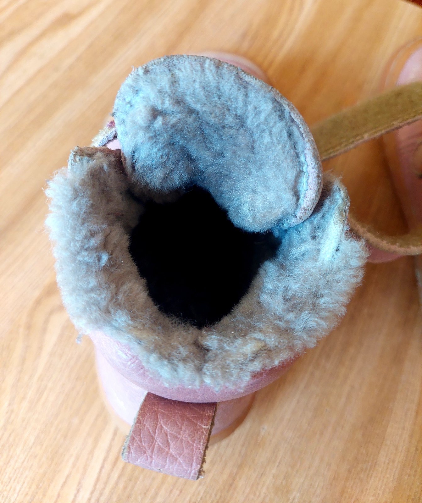 Perfektne kozene topanky. Lahke, vodeodolne, do vsetkych smerov ohybne. Sedia aj uzkym patam a clenkom. Vhodne na nizsie az jemne vyssie priehlavky (nie vysoke). Na normalnu a sirsiu nozku, sedia aj plutvickam. Zateplene kvalitnou jemnou jahnacou kozusinkou. Bez opatku, podrazka 5mm guma, stielka nevyberatelna. Par suchancov (vid foto), inak vyborny stav. Nosene 3 mesiace, velkost 23 (14,7x6,3mm).