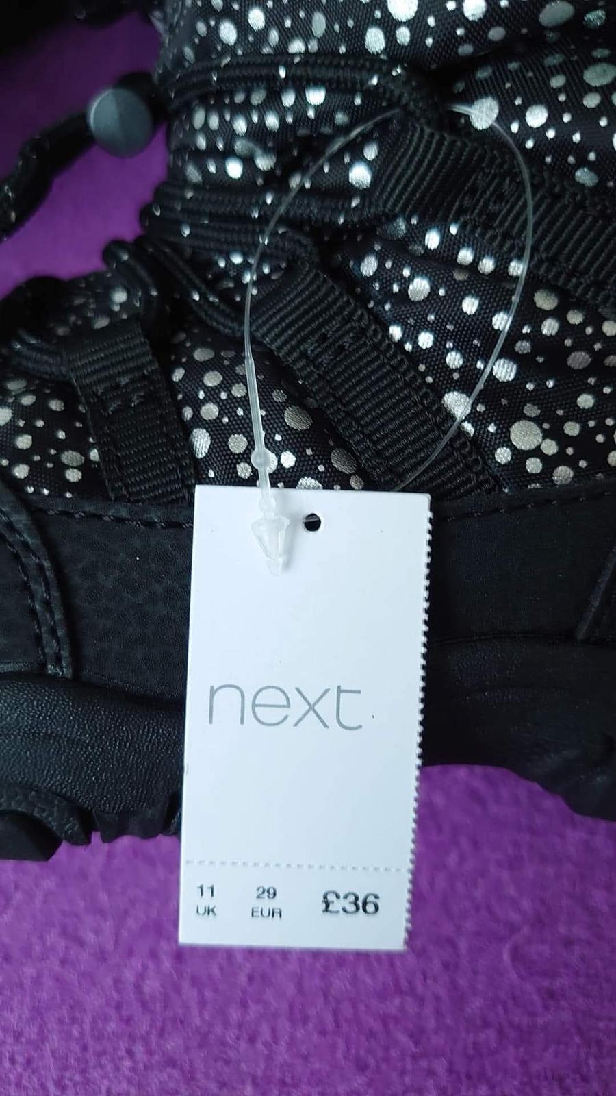 SKLADOM Čierne vyššie čižmy Next, pravá koža, biker štýl. Kód 864127. Dostupné veľkosti: UK11 = EU29, UK1 = EU33. TOVAR JE U NÁS SKLADOM = EXPEDUJEME IHNEĎ žiadny Ali, iba originály priamo od v...