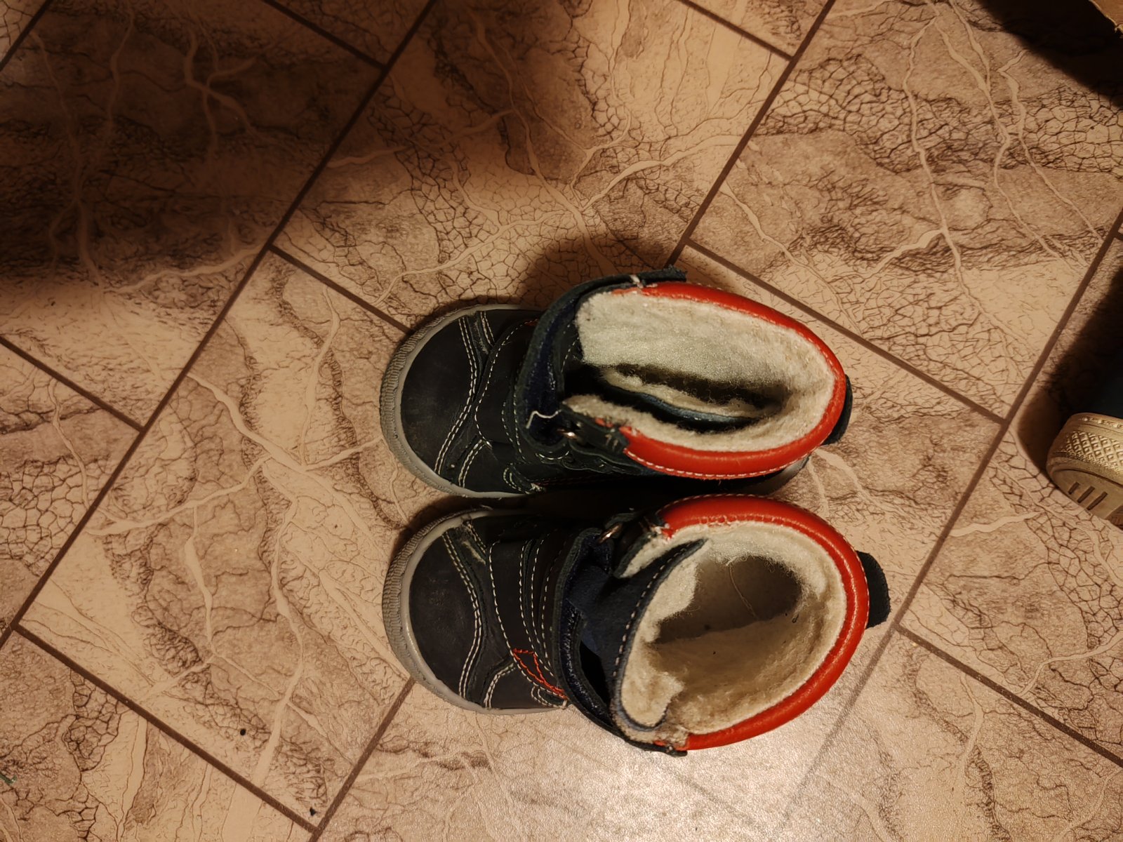 Detske snehule Muflon pre chlapca. Velkost 21-22, vnutro je 12cm a je to prava ovcia kozusina. Farba tmavomodra s bledomodrov, zo zadu maju snehule reflexny pruzok. Cena 9e
