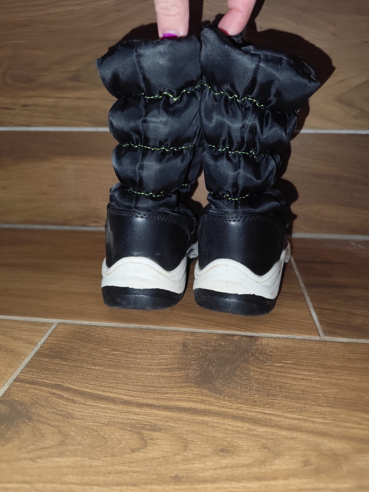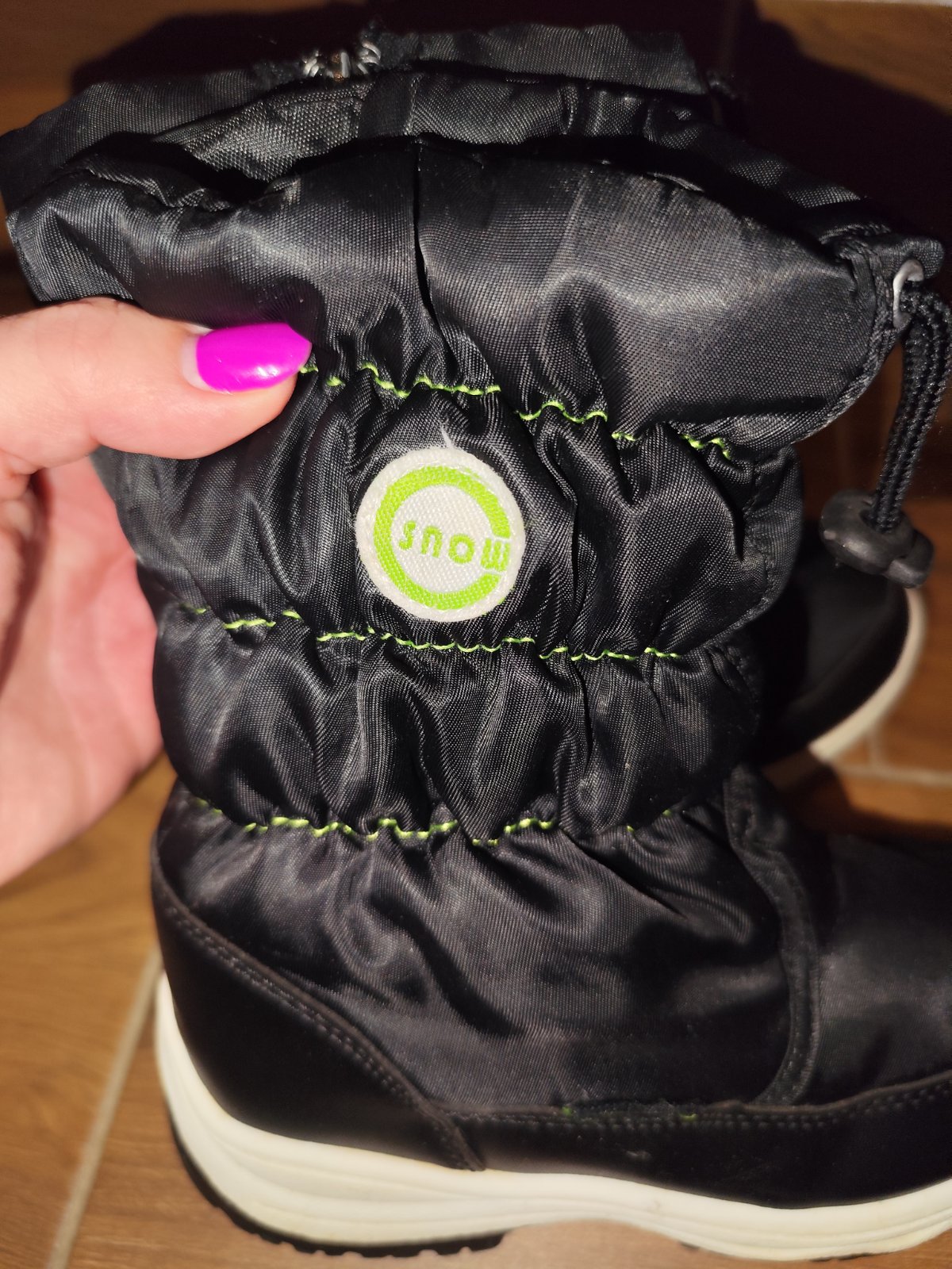 Predám čierne čižmy/snehule po jednom dieťati vhodné pre chlapcov aj dievčatá, značka Cortina Snow, veľkosť uvedená 30, vnútorná dĺžka cca 19,5 cm.